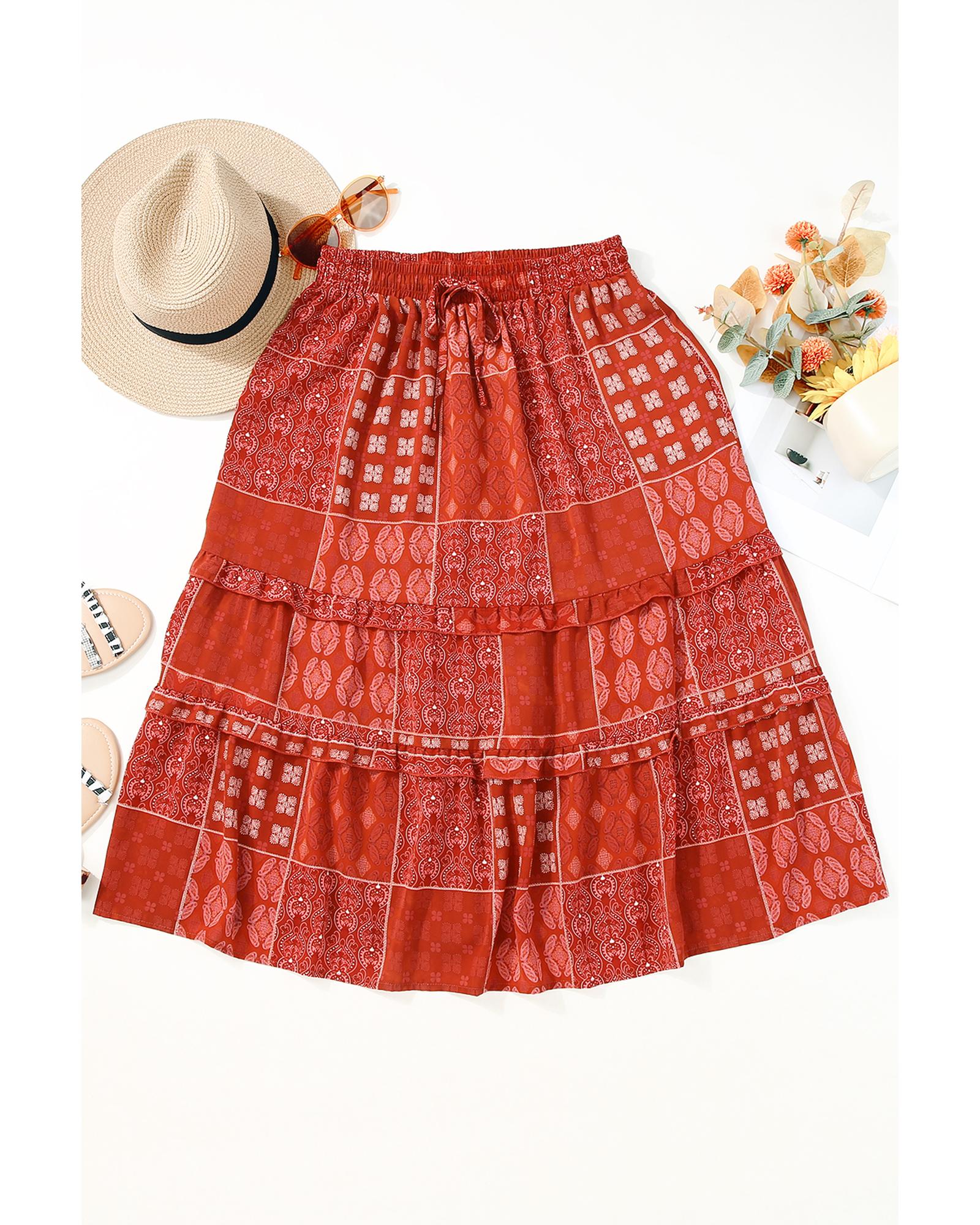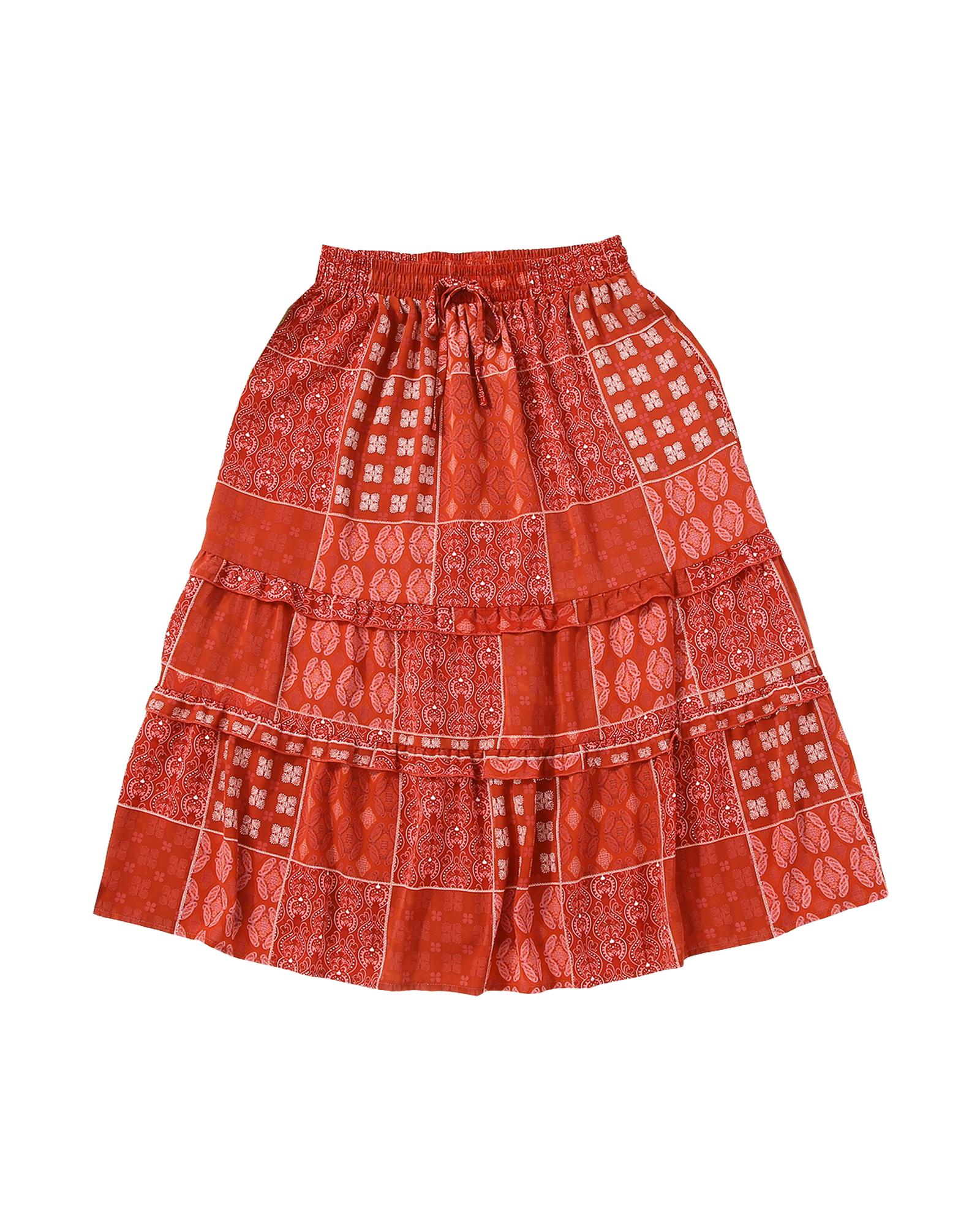 - catching red printed skirt