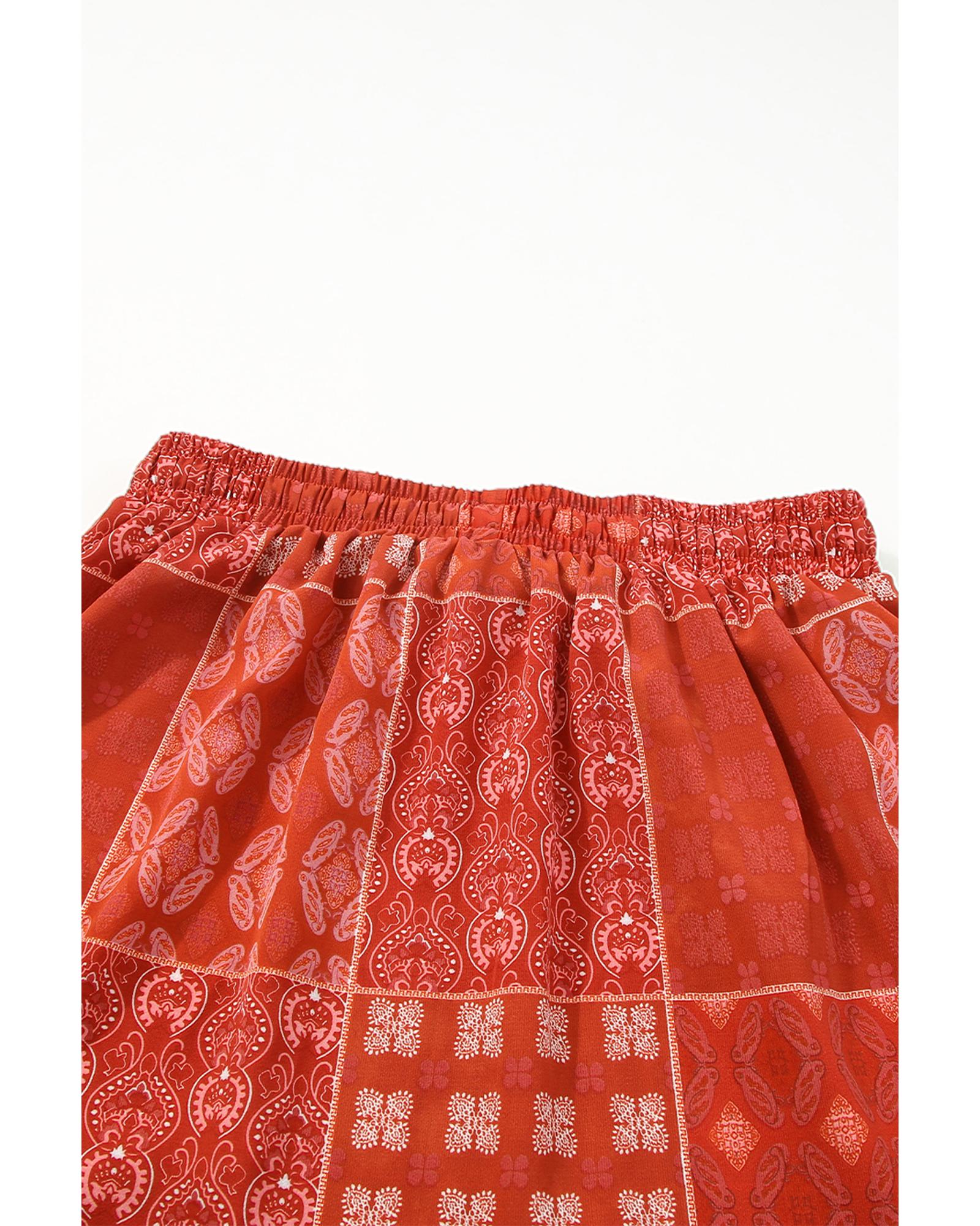 Red Bohemian Mix Print Long Flared Skirt – M