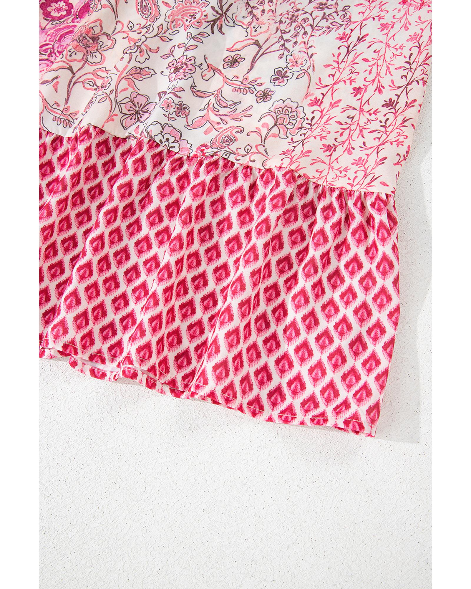 Red Boho Pattern Print Tassel Drawstring High Waist Maxi Dress – S