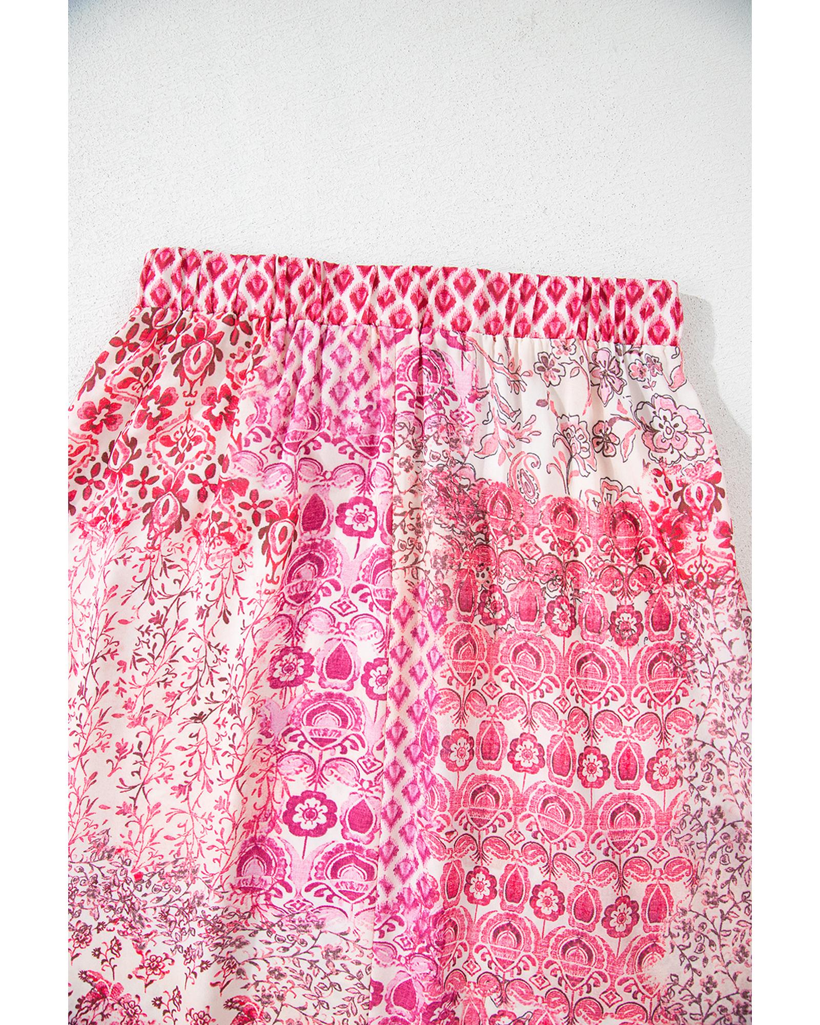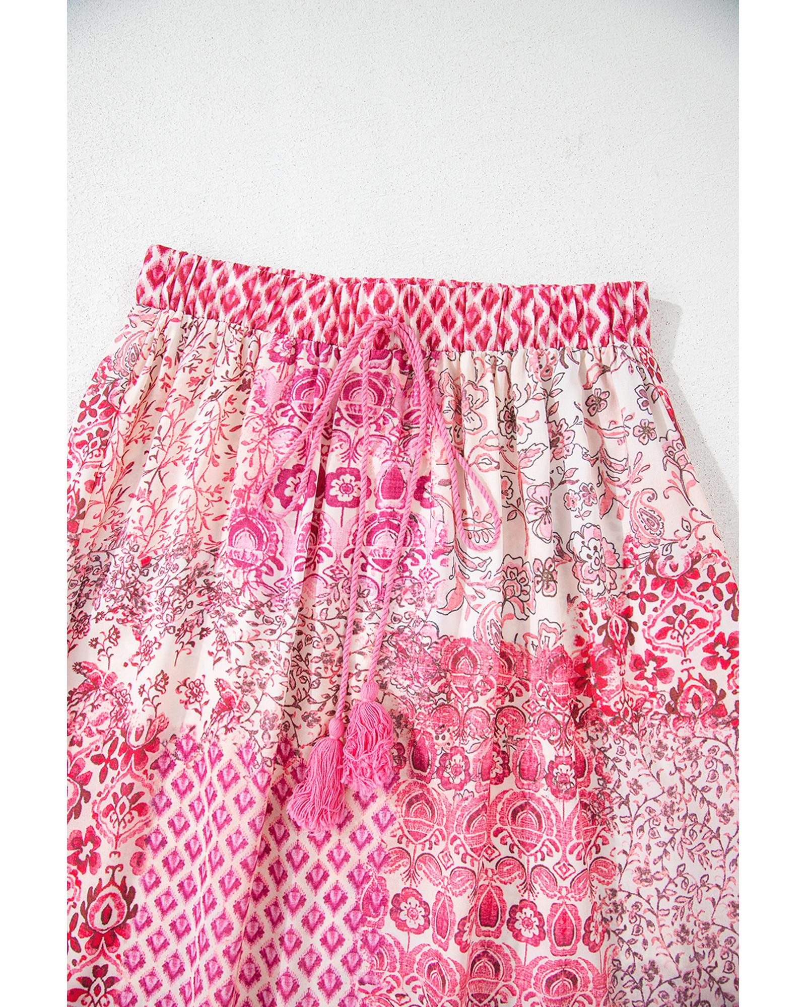 Red Boho Pattern Print Tassel Drawstring High Waist Maxi Dress – XL