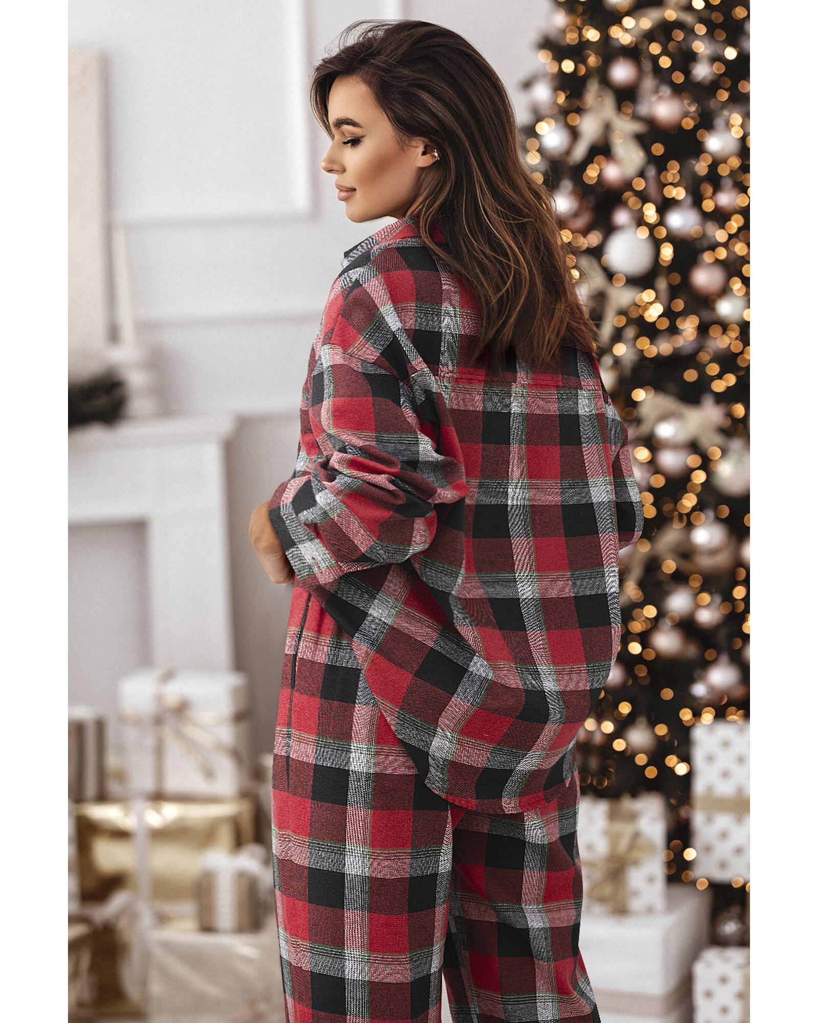 Red Christmas Checkered Pattern Loose Shirt and Pants Lounge Set – M