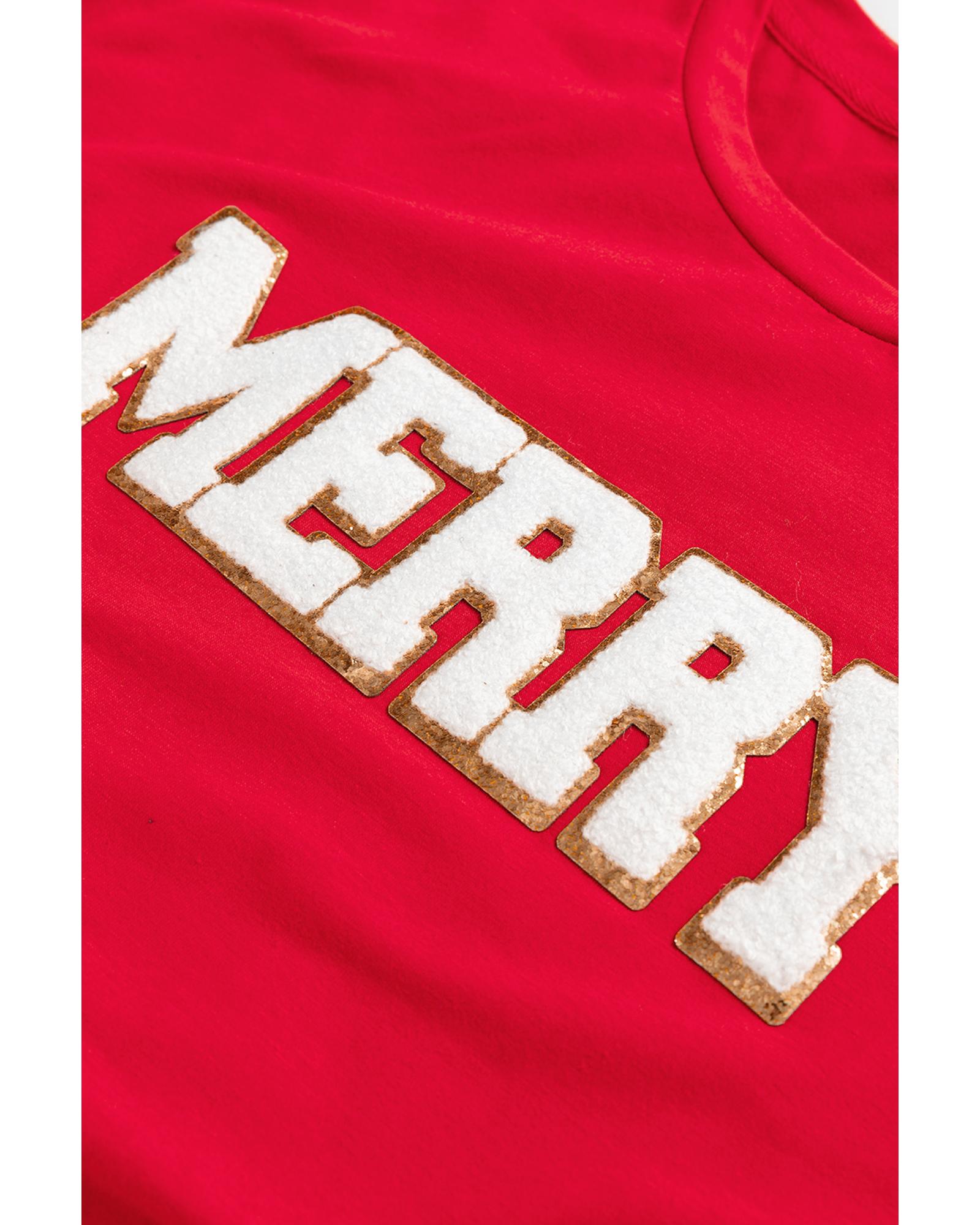 Red Christmas MERRY Graphic Cuffed Sleeve T Shirt – M