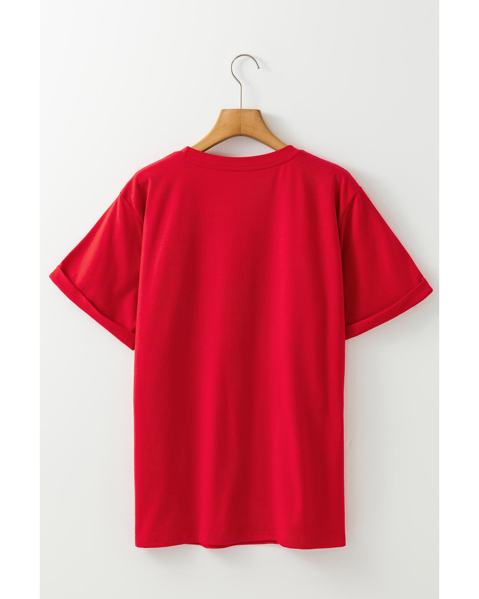 Red Christmas MERRY Graphic Cuffed Sleeve T Shirt – S