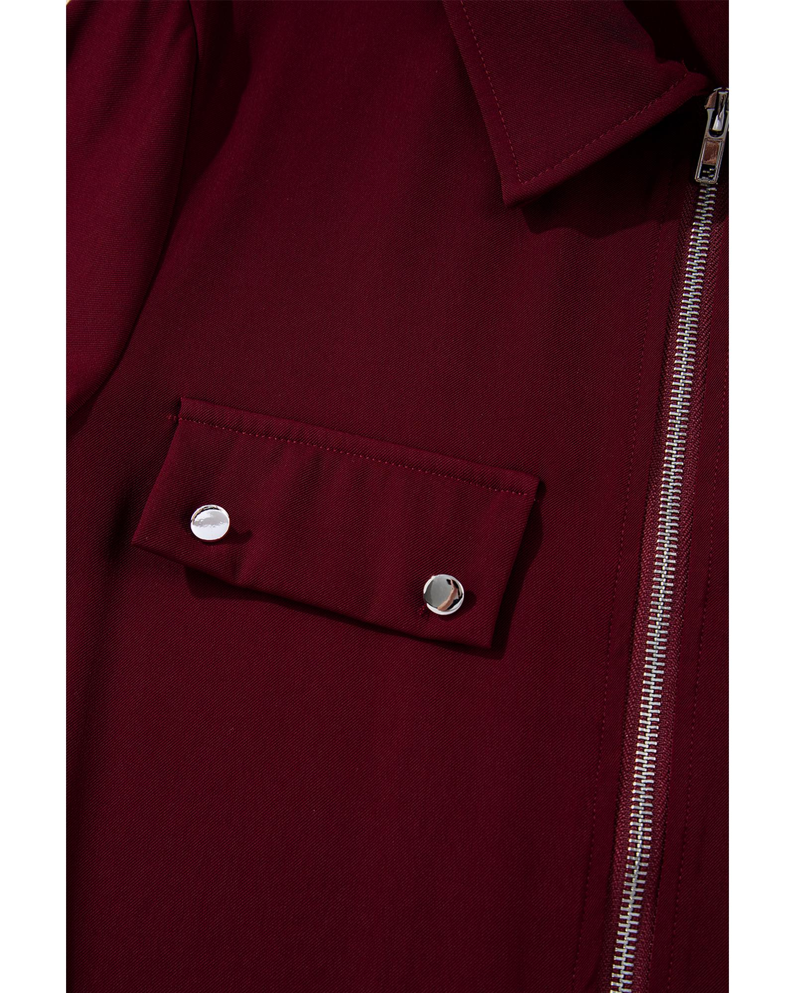 Red Dahlia Collar Tab Sleeve Zip Up Flap Detail Jacket – S