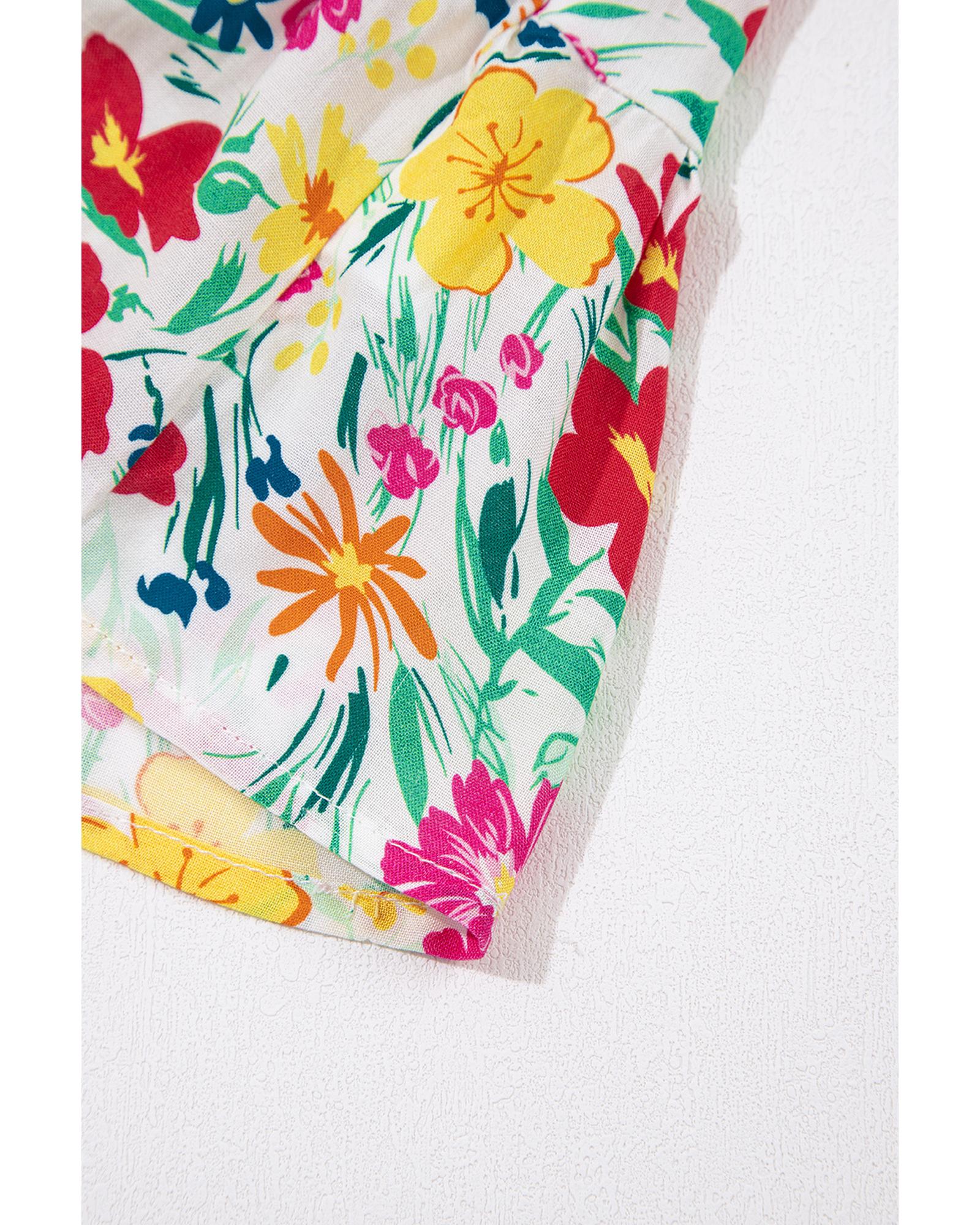 Red Floral Knotted Straps Cinched Waist Ruffle Hem Mini Dress – S