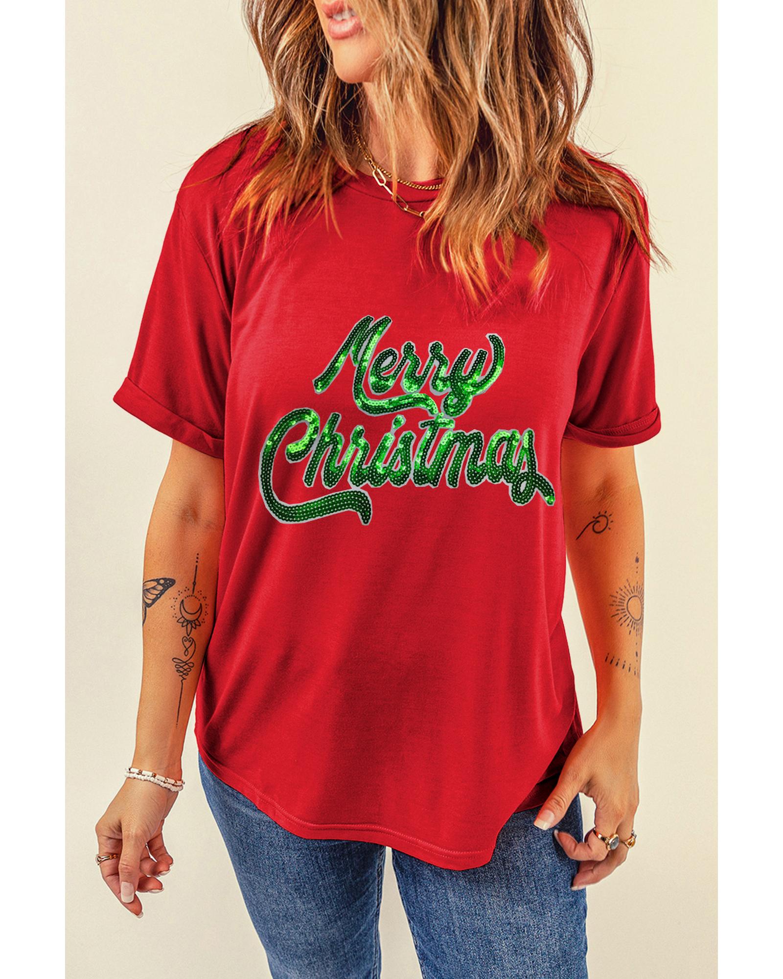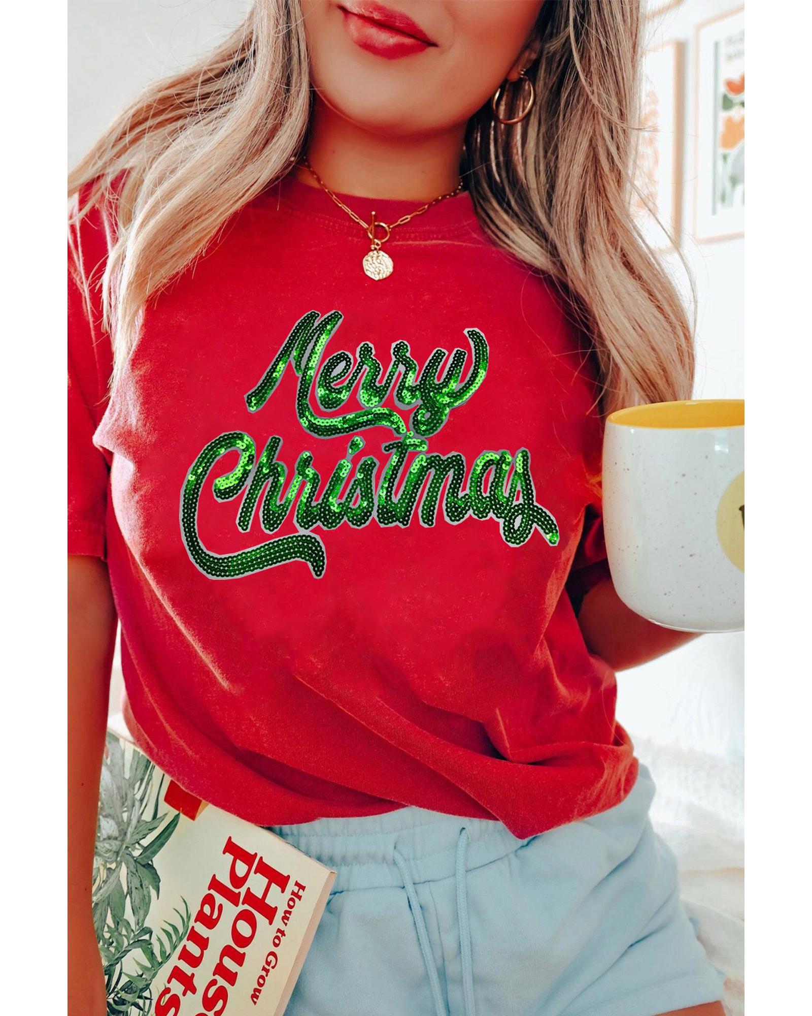 • Red Merry Christmas Graphic Crewneck T