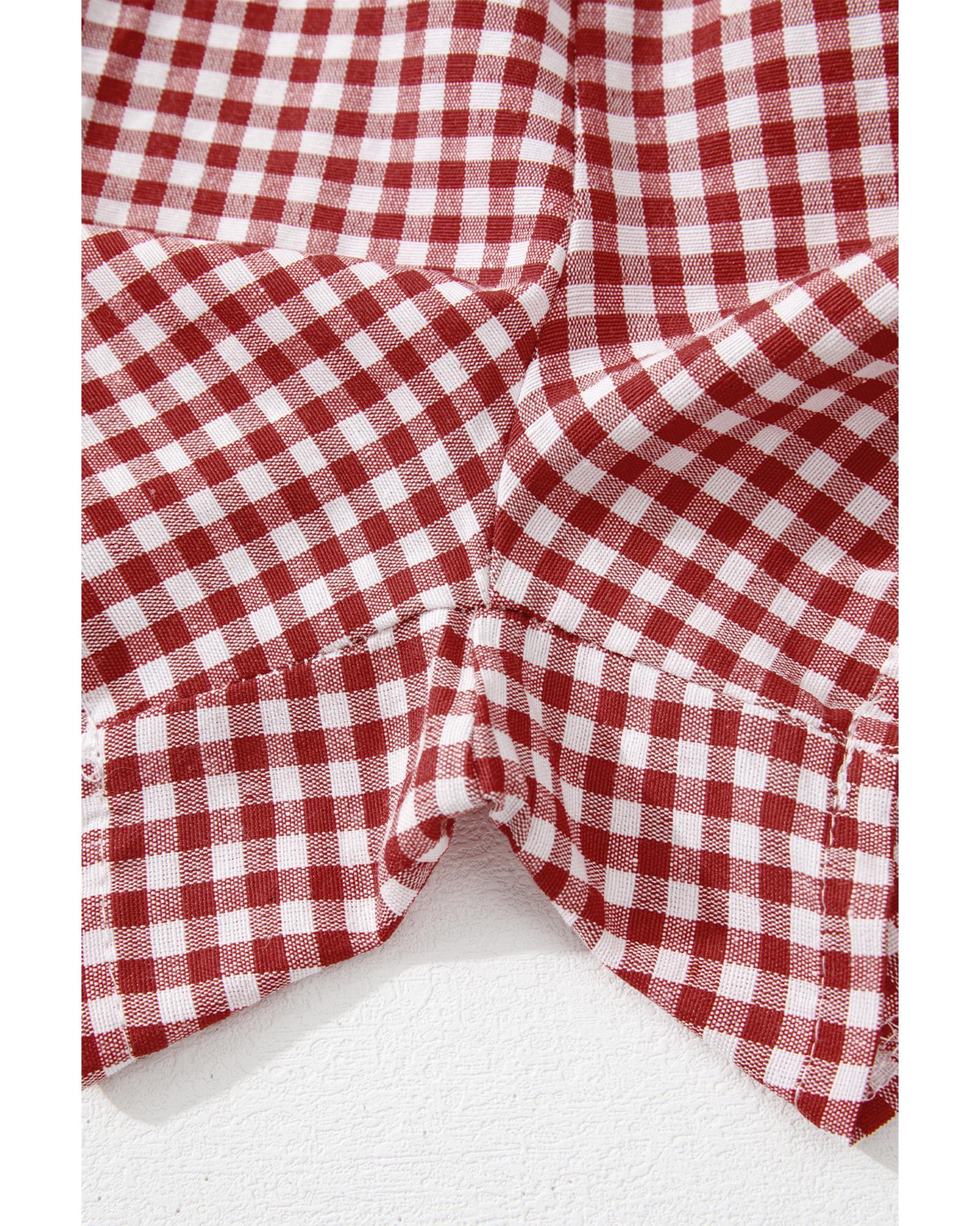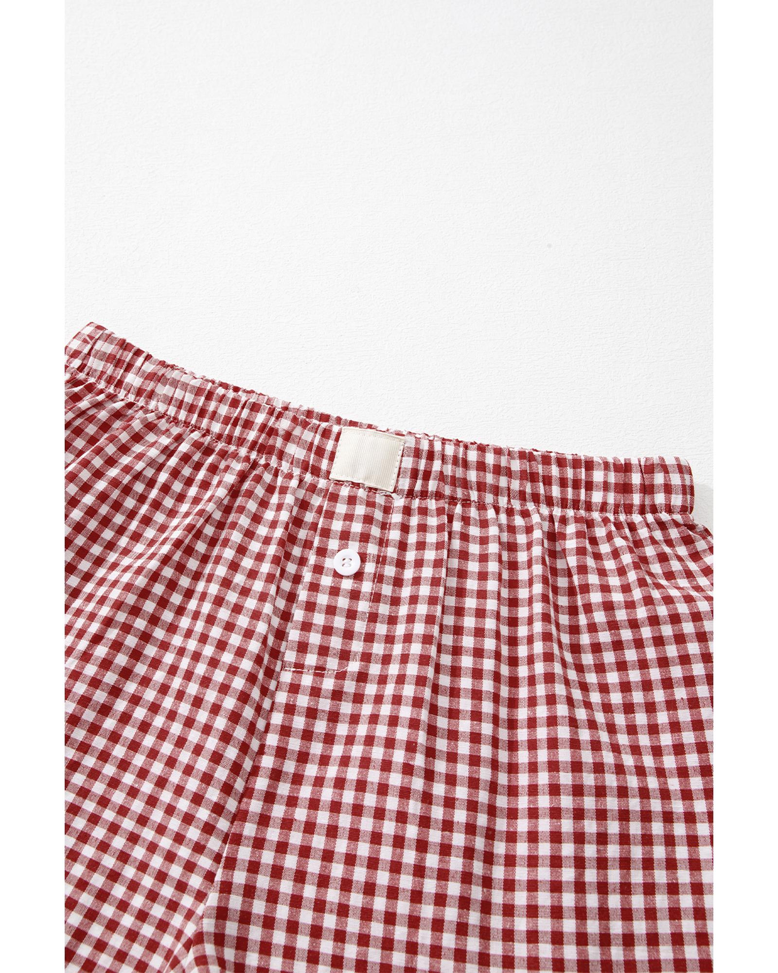 Red Plaid Gingham Printed High Waist Shorts – M