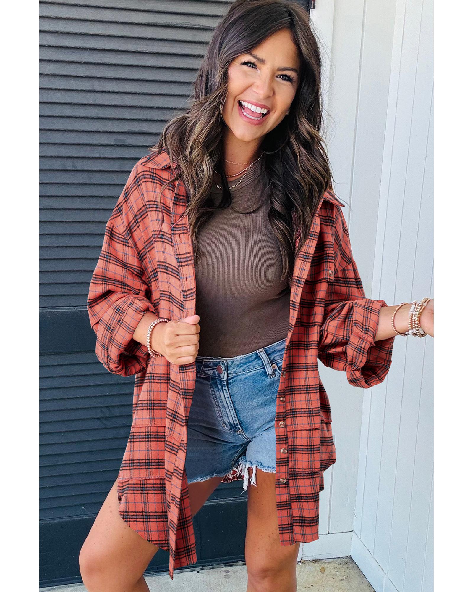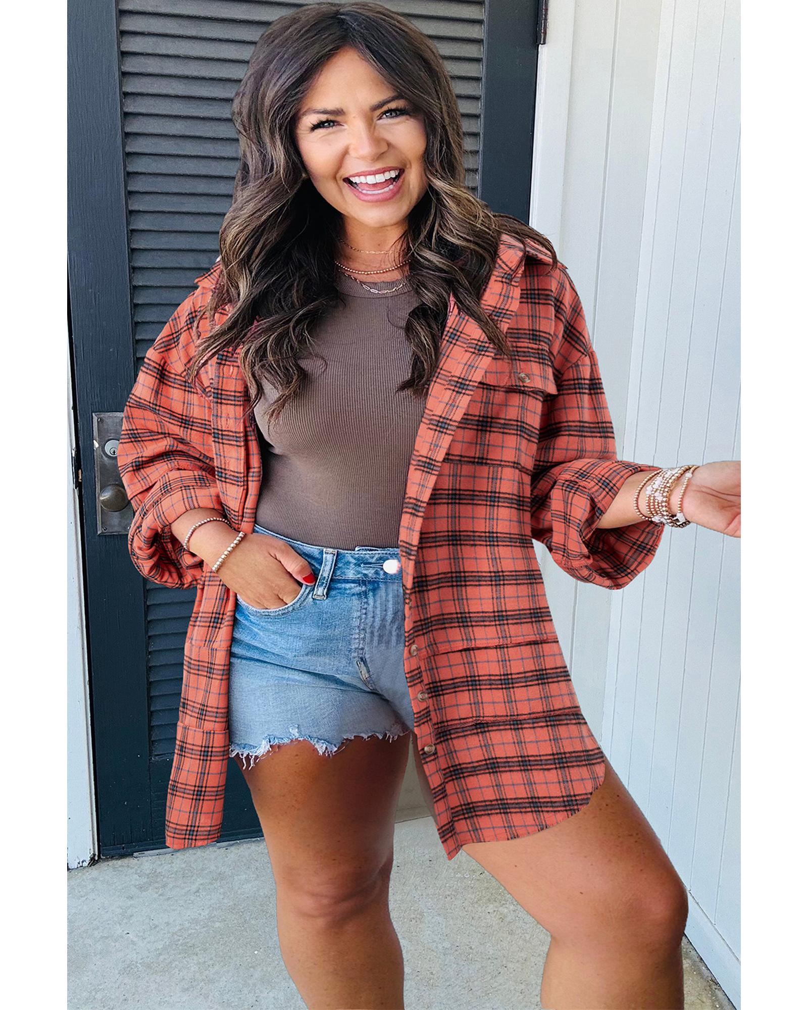 Red Plaid Long Sleeeve Side Split Distressed Hem Shirt - S Original price was: $76.99.Current price is: $41.99.