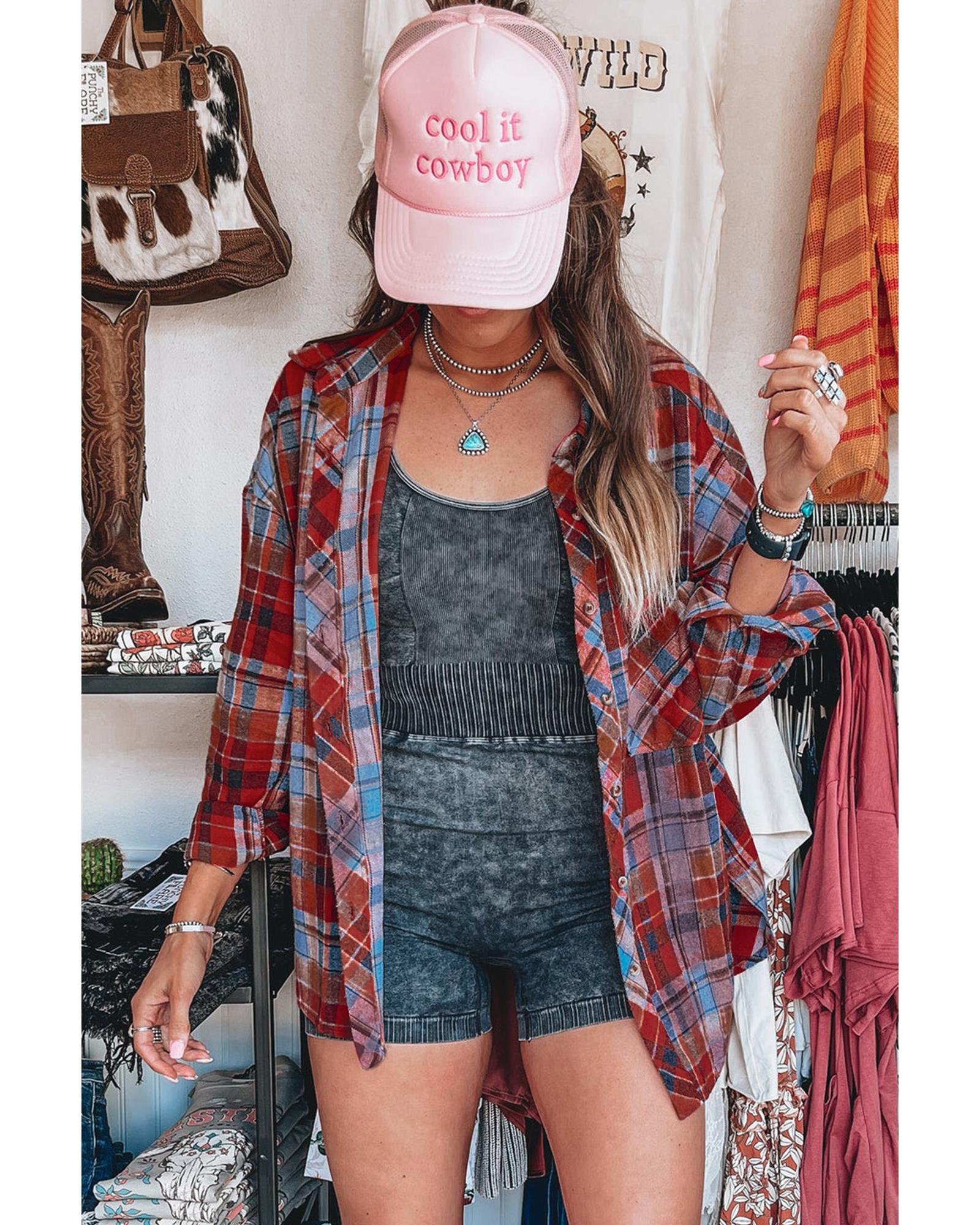 Red Plaid Print Loose Vintage Shirt – L