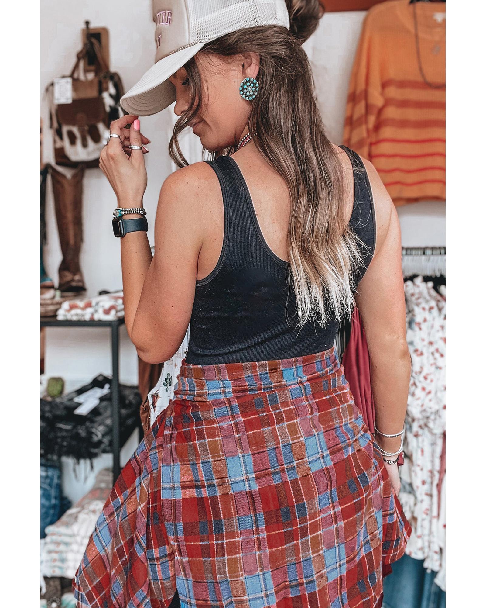 - Classic plaid print design with a touch of retro charm