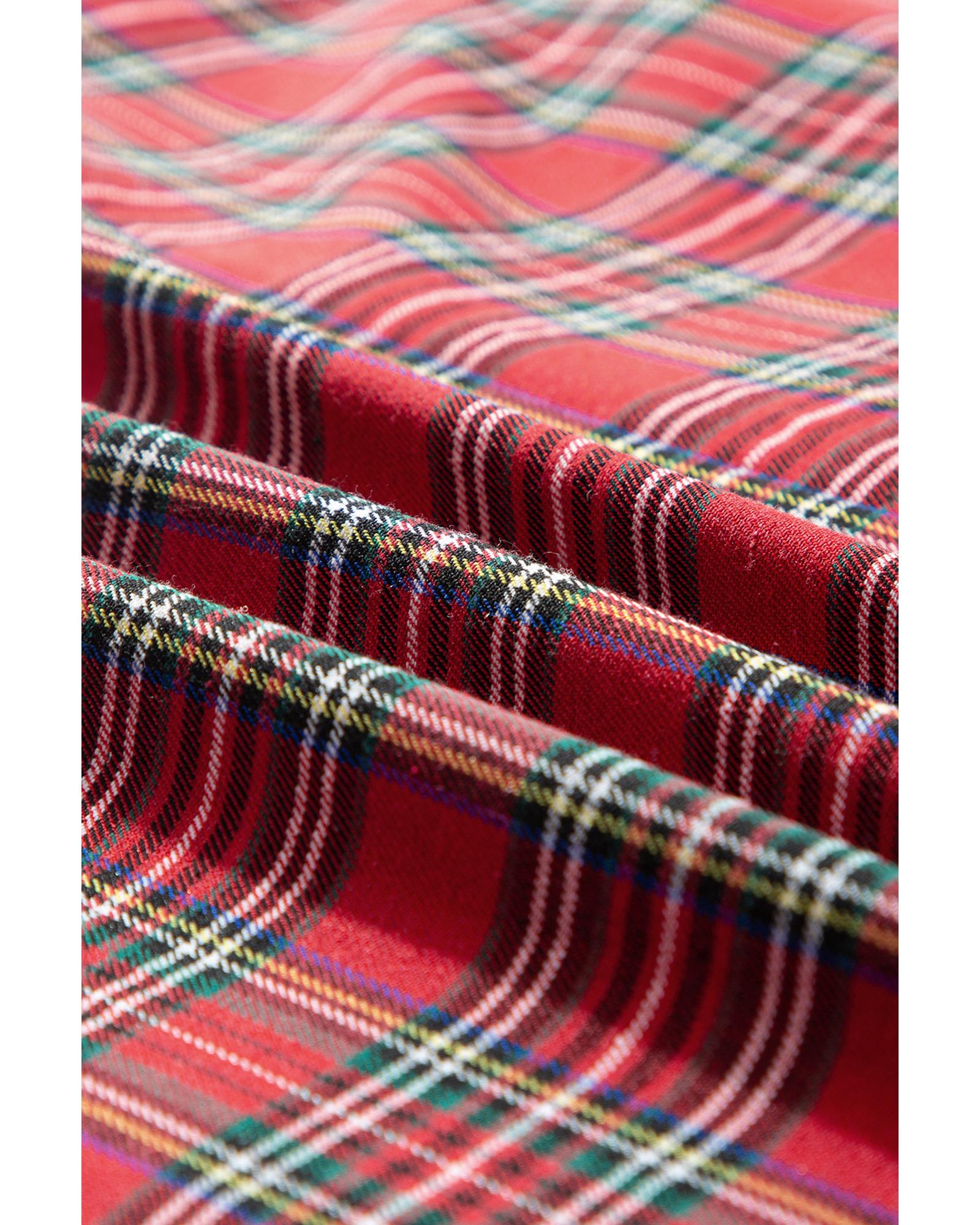 - Red Plaid Printed Shirt and Pants Plus Size Lounge Set