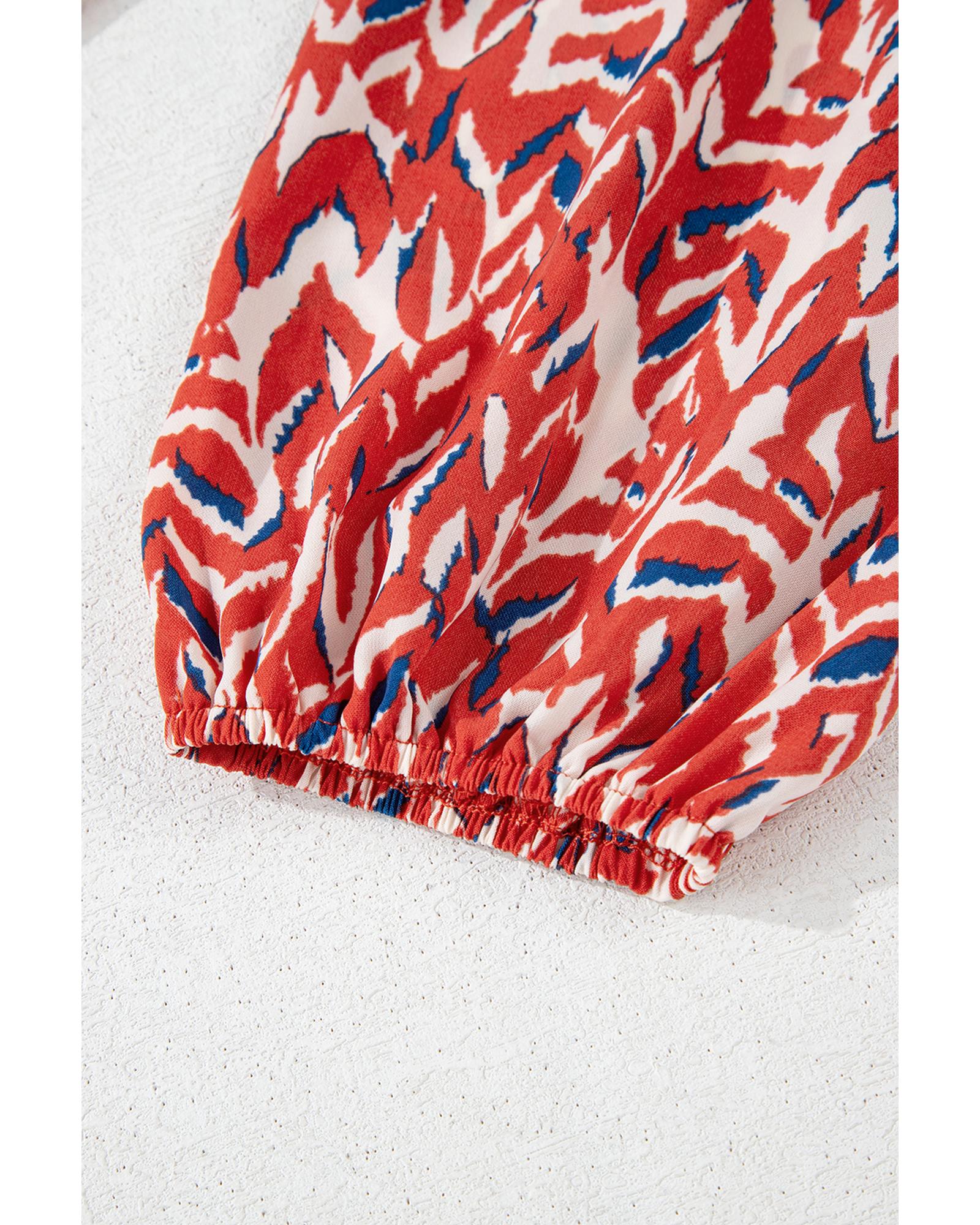 Red Plus Size Abstract Print Notch V Neck High Waist Maxi Dress – 3X