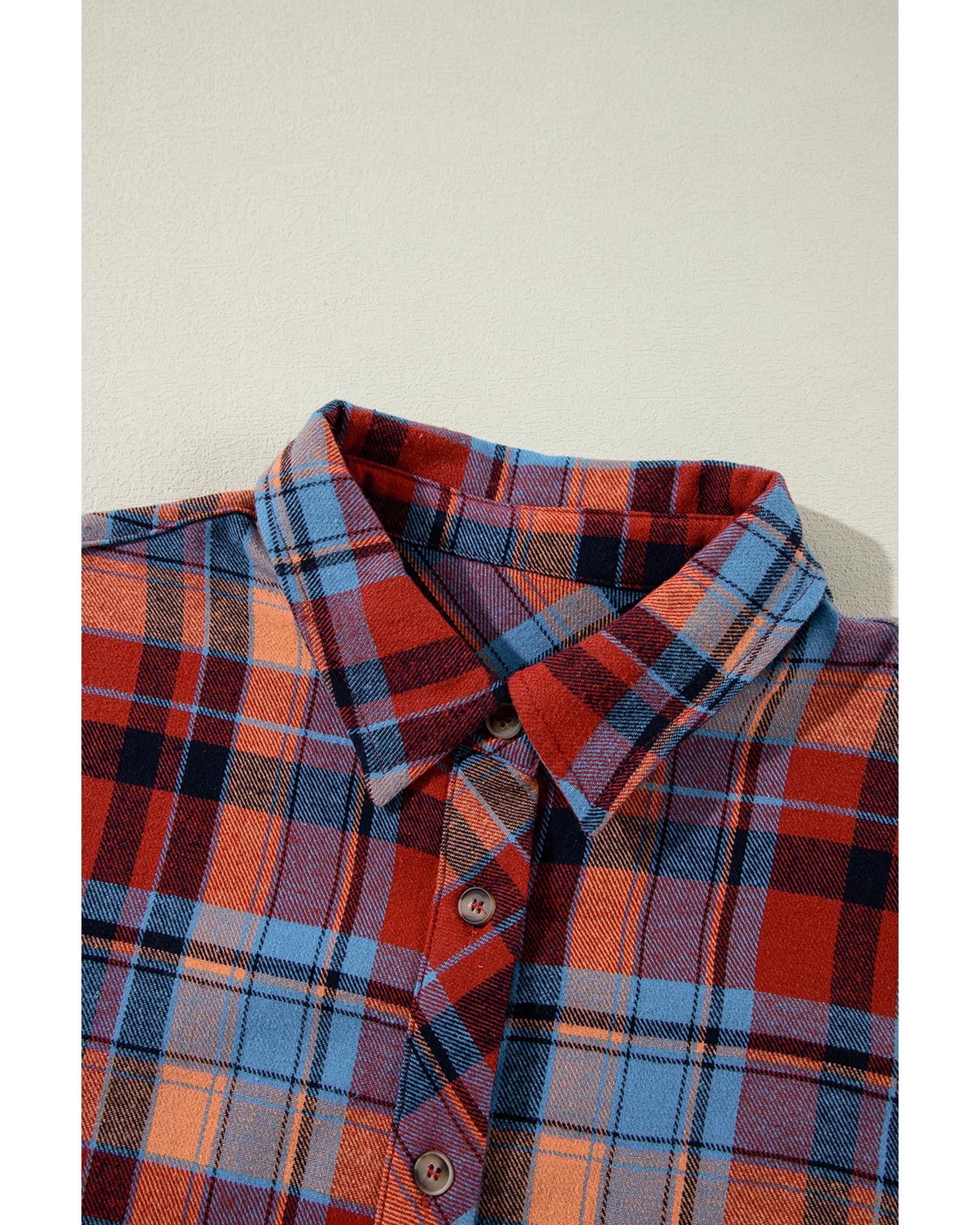 Red Plus Size Plaid Print Buttoned Shirt – 1X