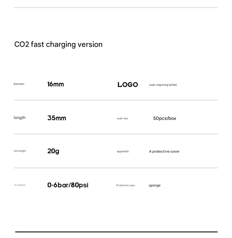 Comes with a 16mm CO2 cartridge (50 pieces per box), providing instant inflation.