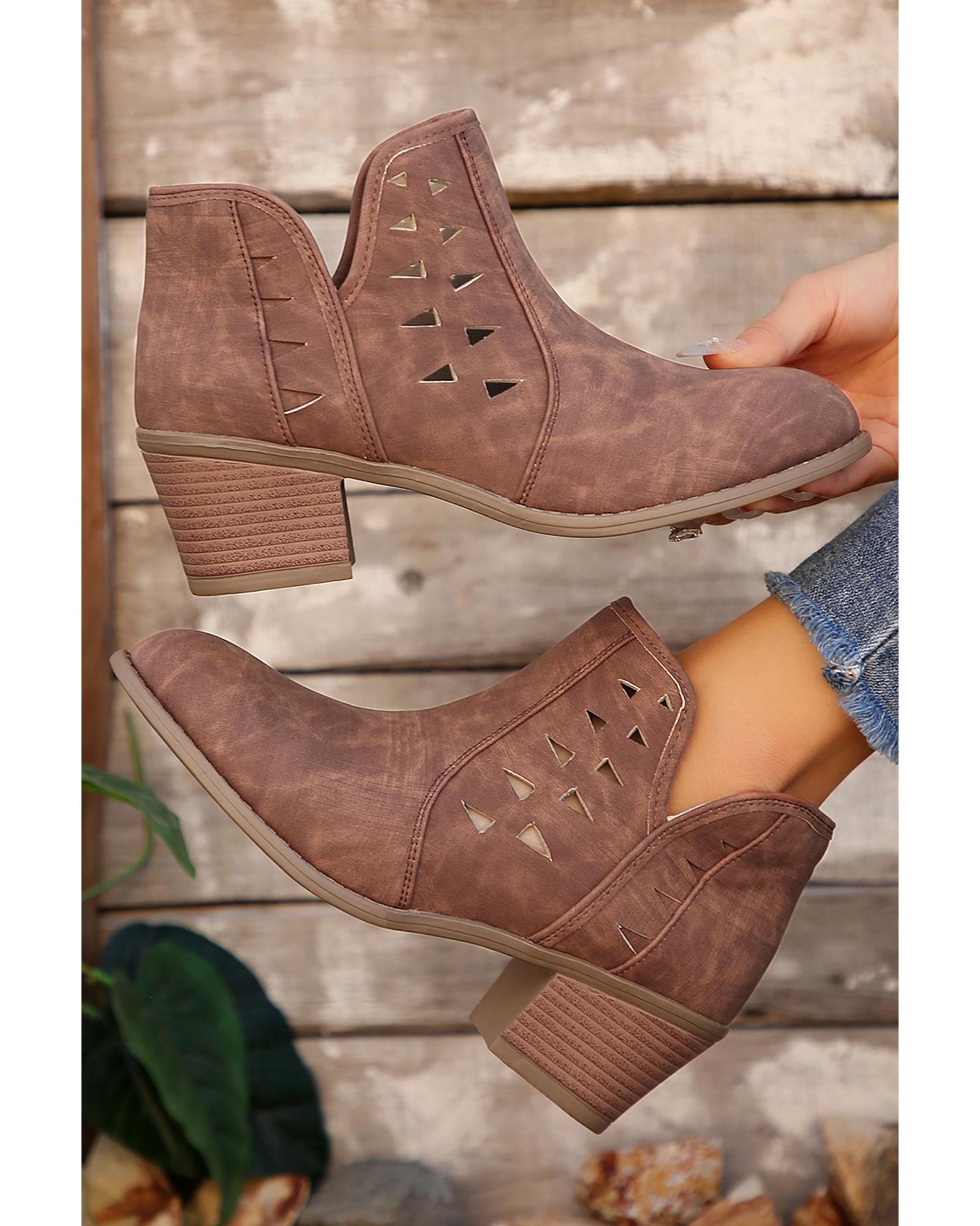 Red Sandalwood Cut Out Suede Pointed Toe Heeled Ankle Boots - 41 EU