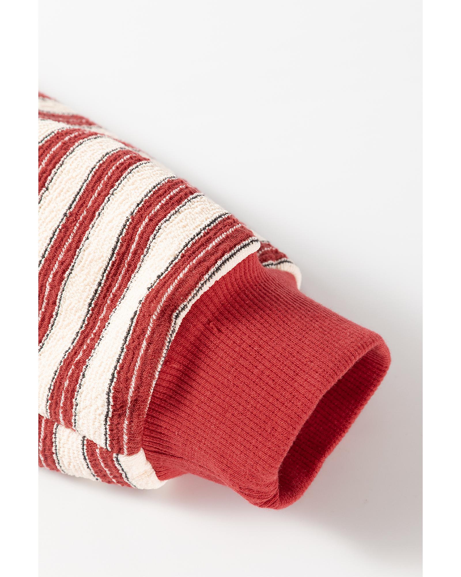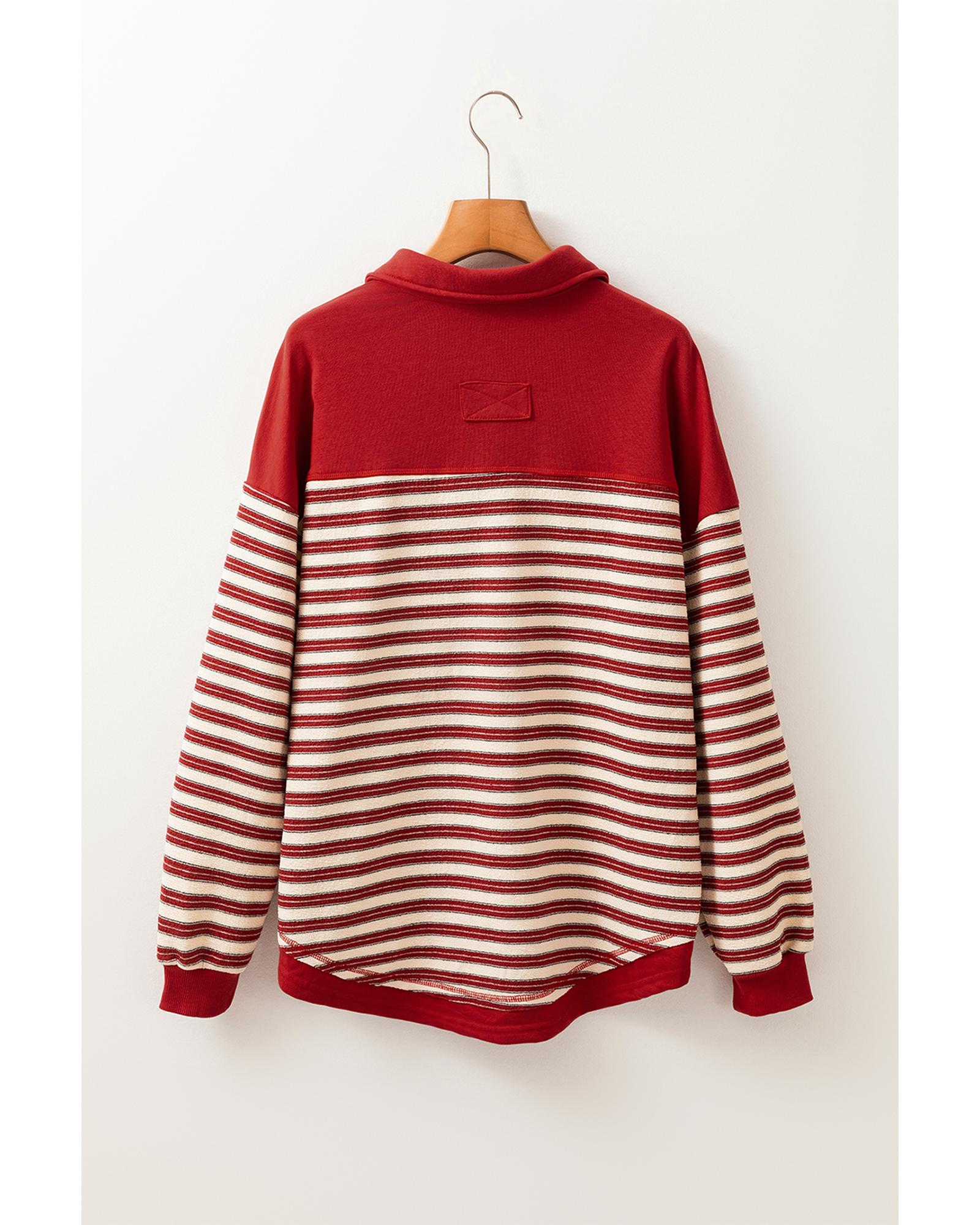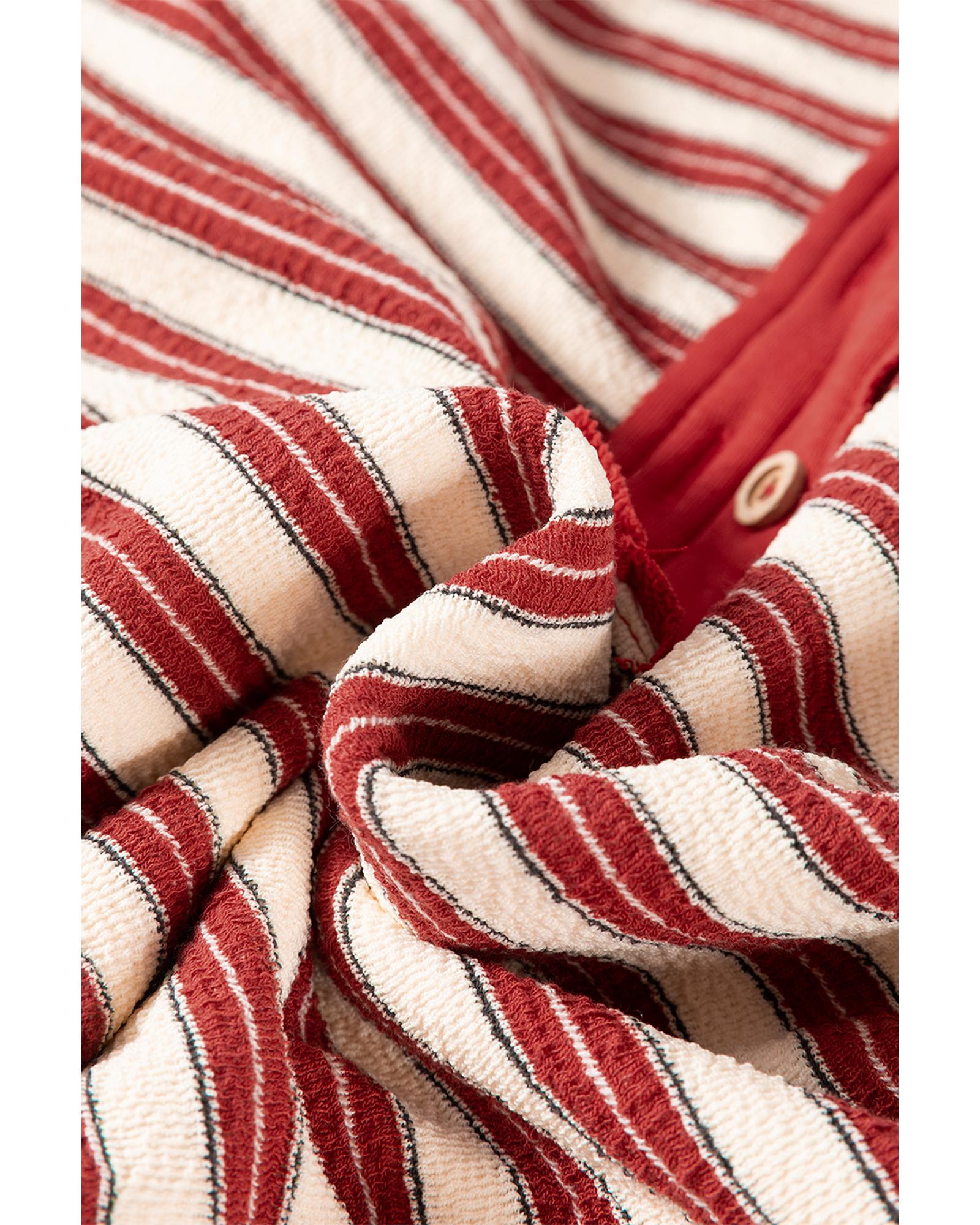 Red Stripe Buttoned V Neck Collared Drop Shoulder Top – L