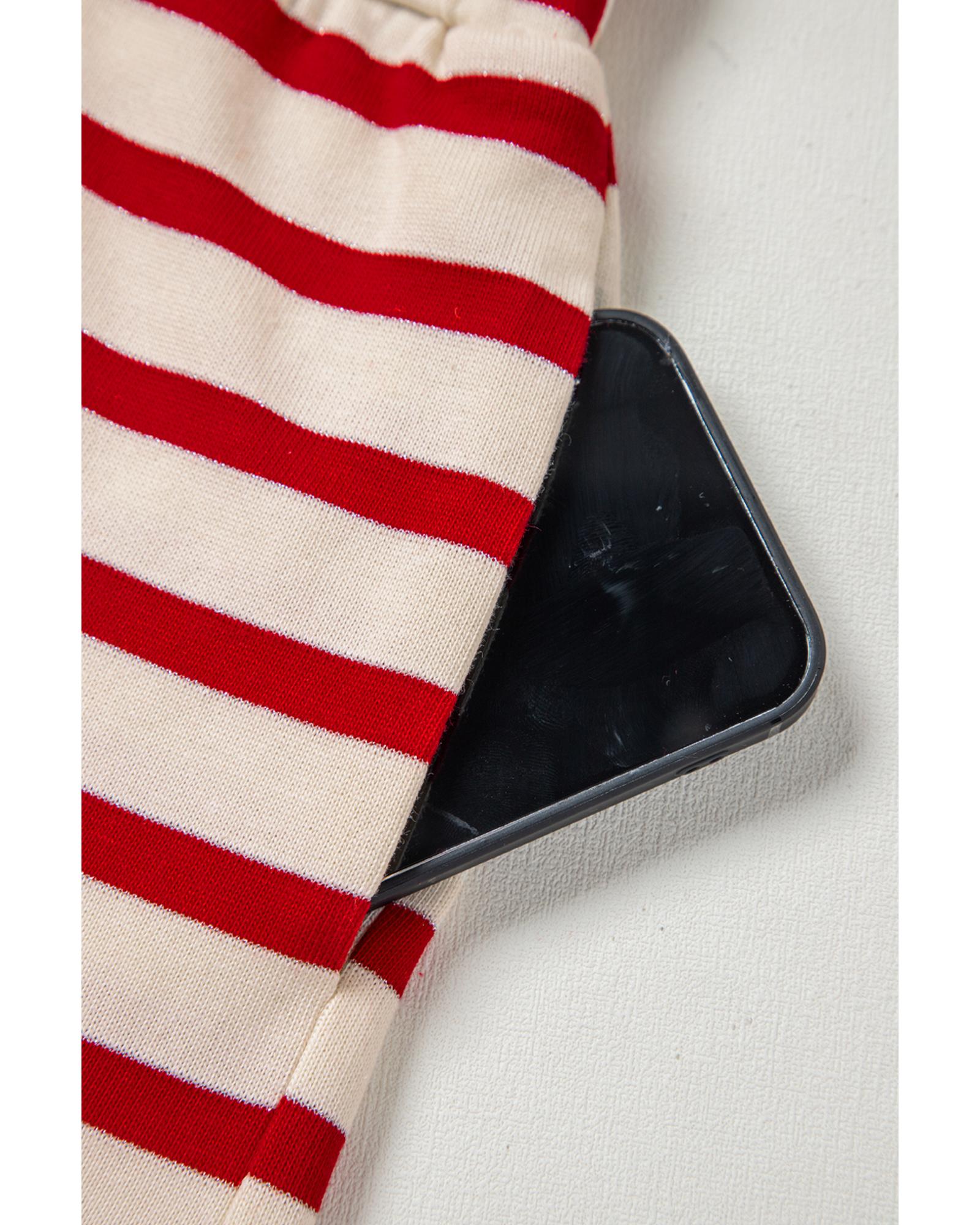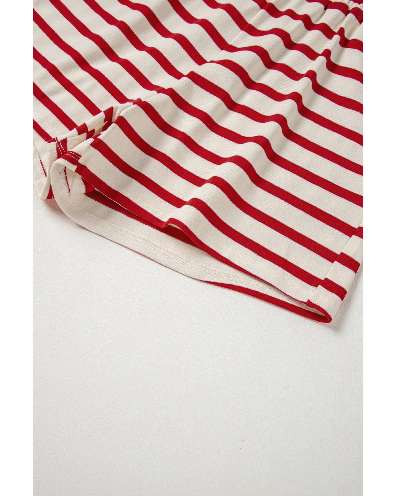 Red Stripe Lace-up Front Top and High Waist Shorts Set – XL