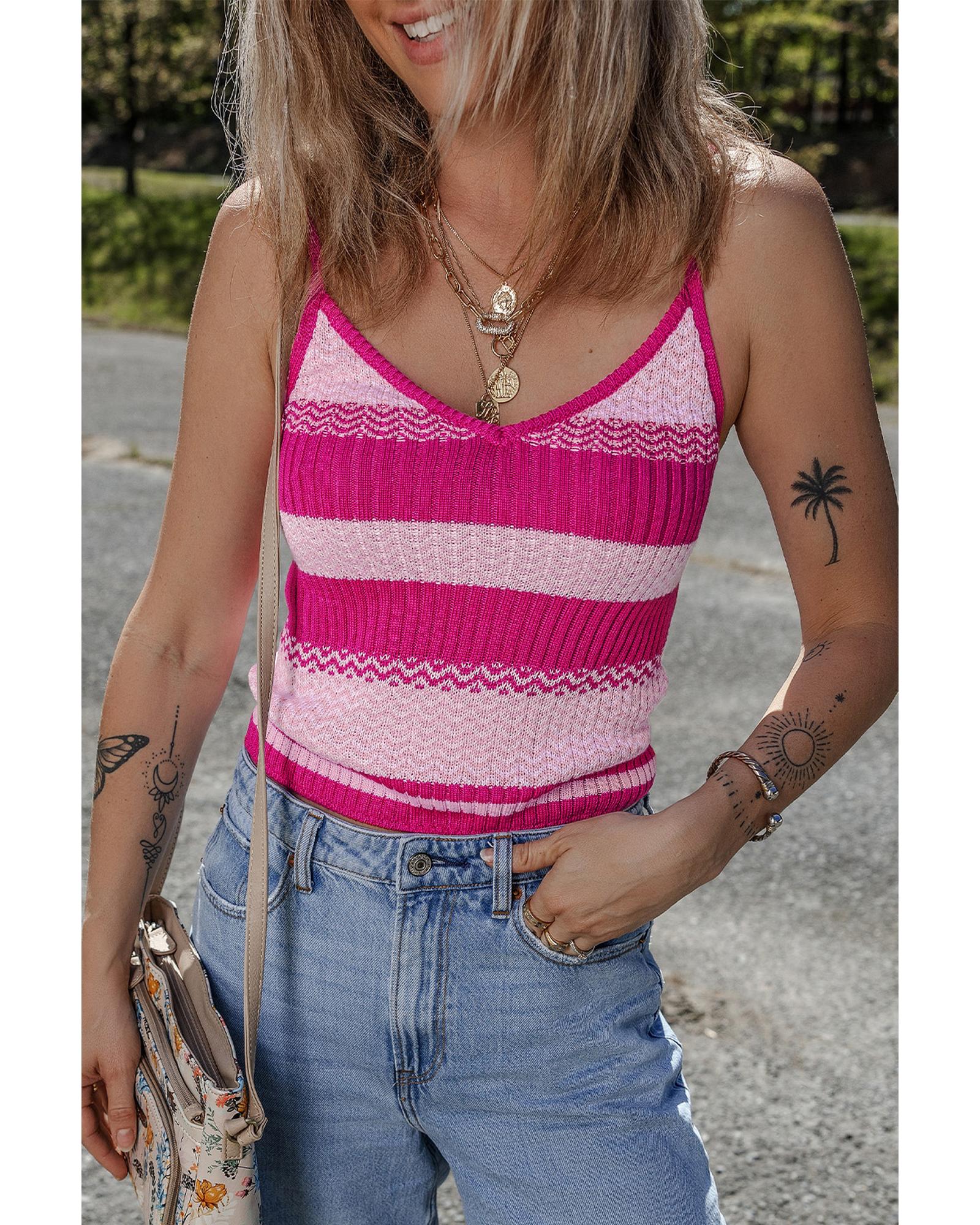 Red Stripe Spaghetti Strap V Neck Sweater Vest – XL