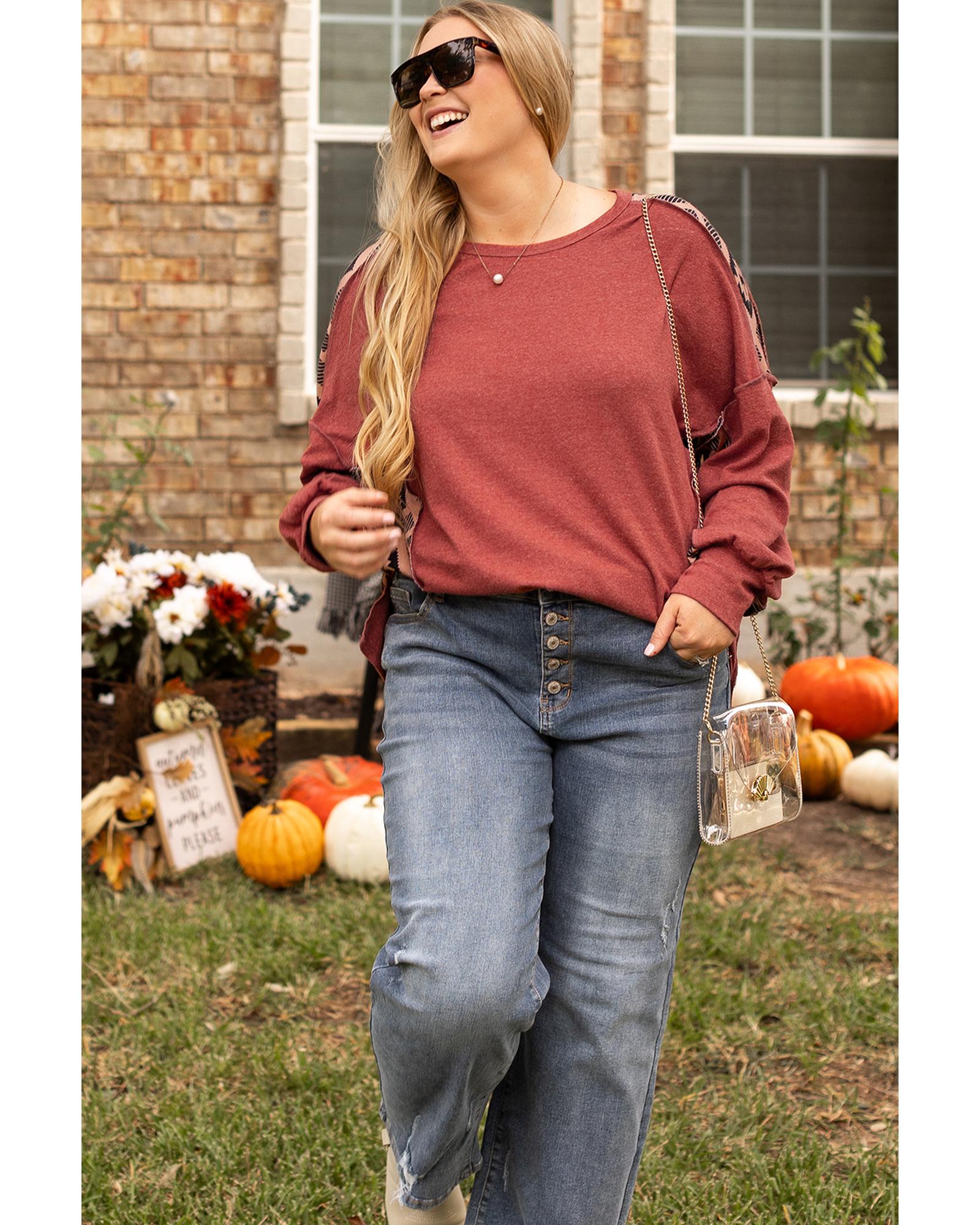 Redwood Burl Aztec Patchwork Drop Shoulder Plus Size High Low Sweatshirt – 4X
