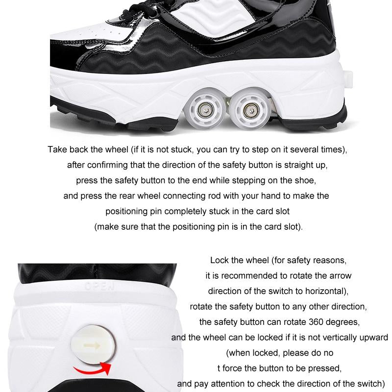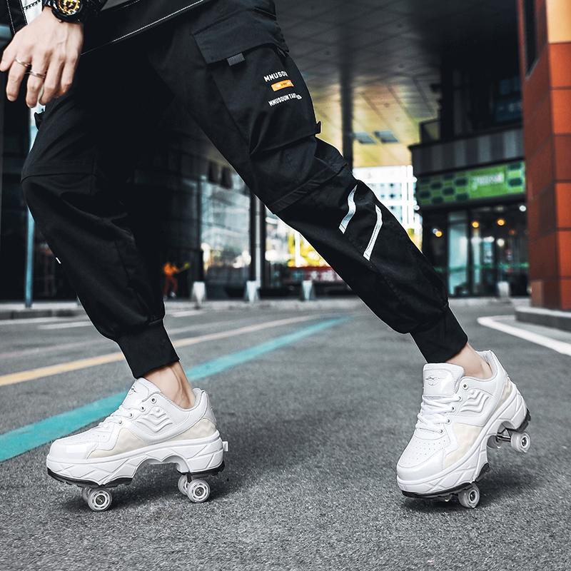 Retractable Dual-purpose Roller Skates – Size 33 Deformable Four-wheel – Df09 White – 36