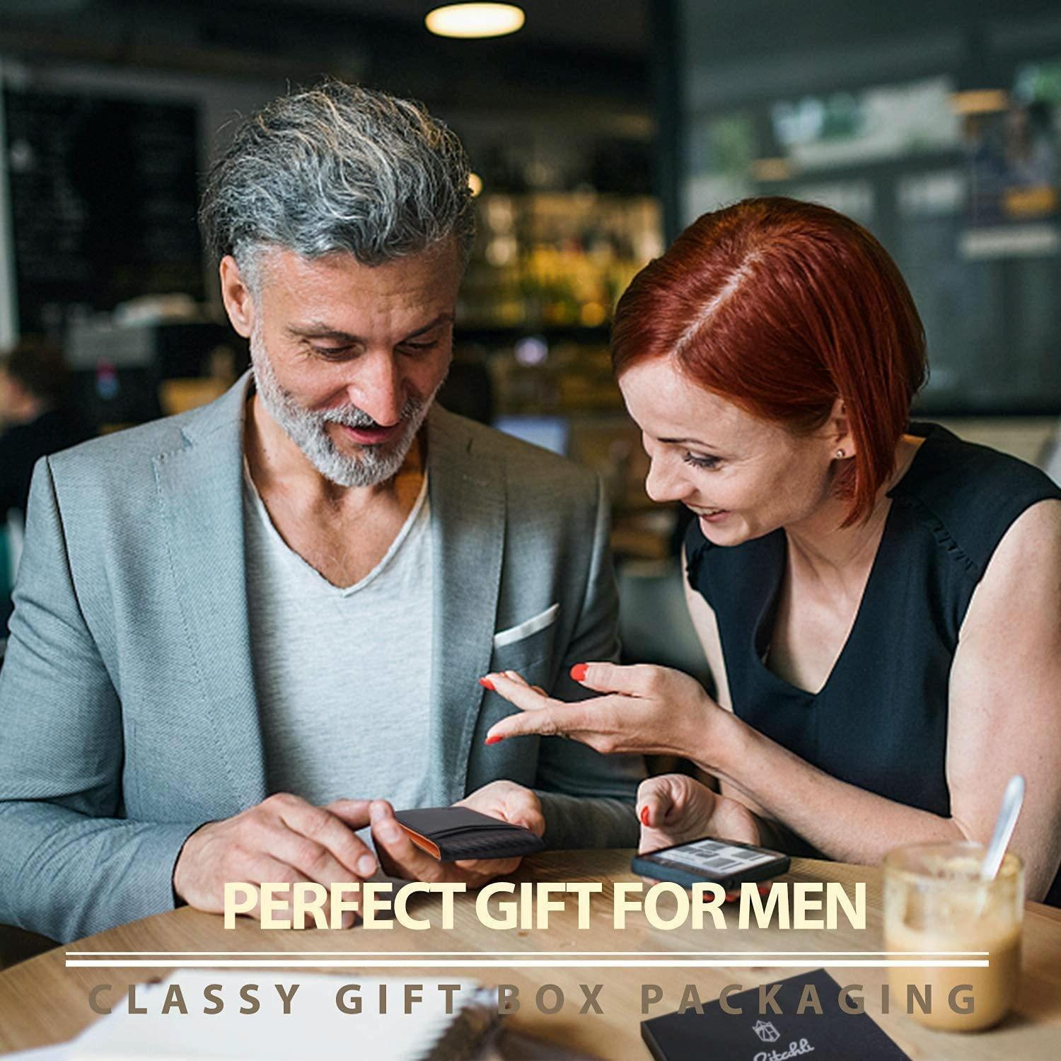 Rfid-protected Leather Credit Card Wallet – Secure & Stylish – Carbon Fiber Black Blue Inner