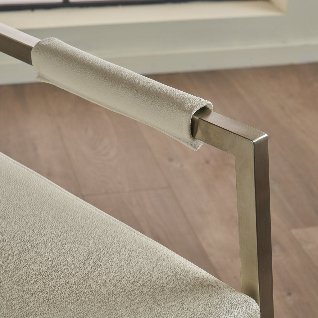 The Rocklin White Leather Armchair provides modern style with simple comfort. White Bonded leather and stainless steel frame make it ideal for any modern interior.