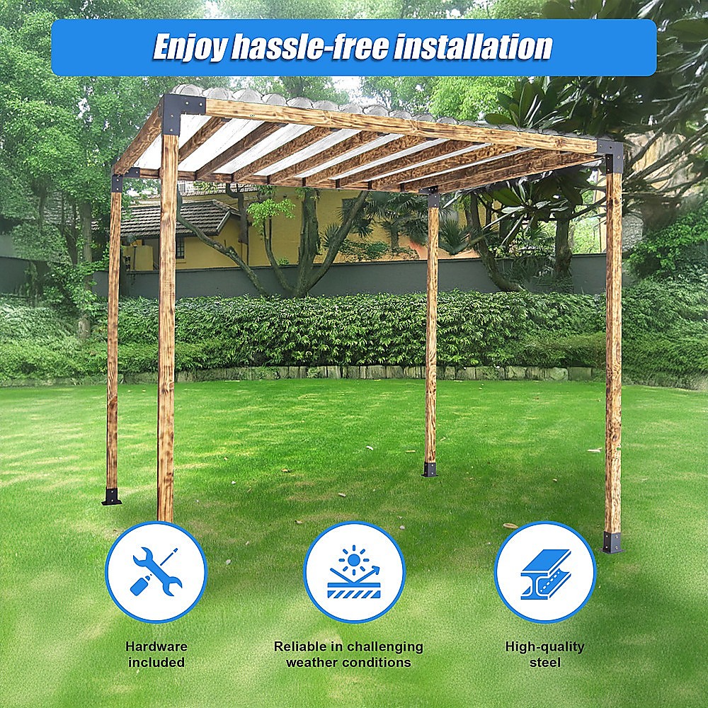 Experience superior quality with our pergola brackets*, crafted from high-quality steel to withstand the elements and stand the test of time. Their durable construction ensures reliability, even in challenging weather conditions, providing you with peace of mind and long-lasting performance.