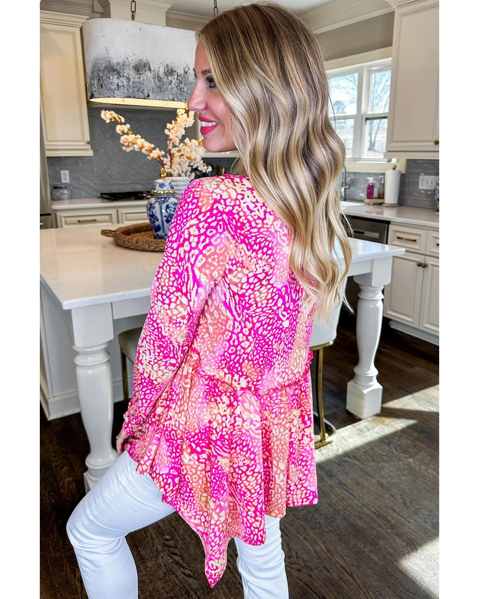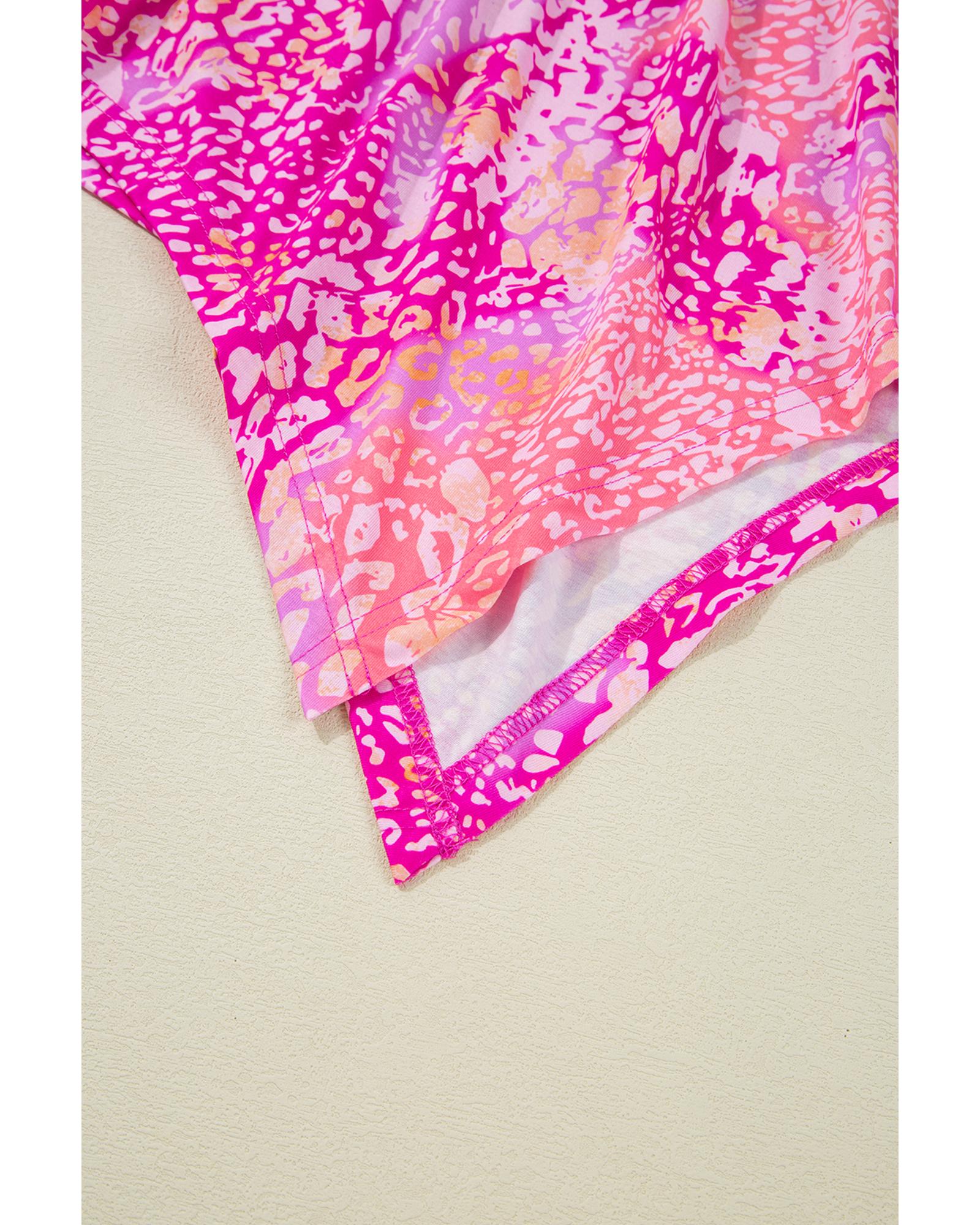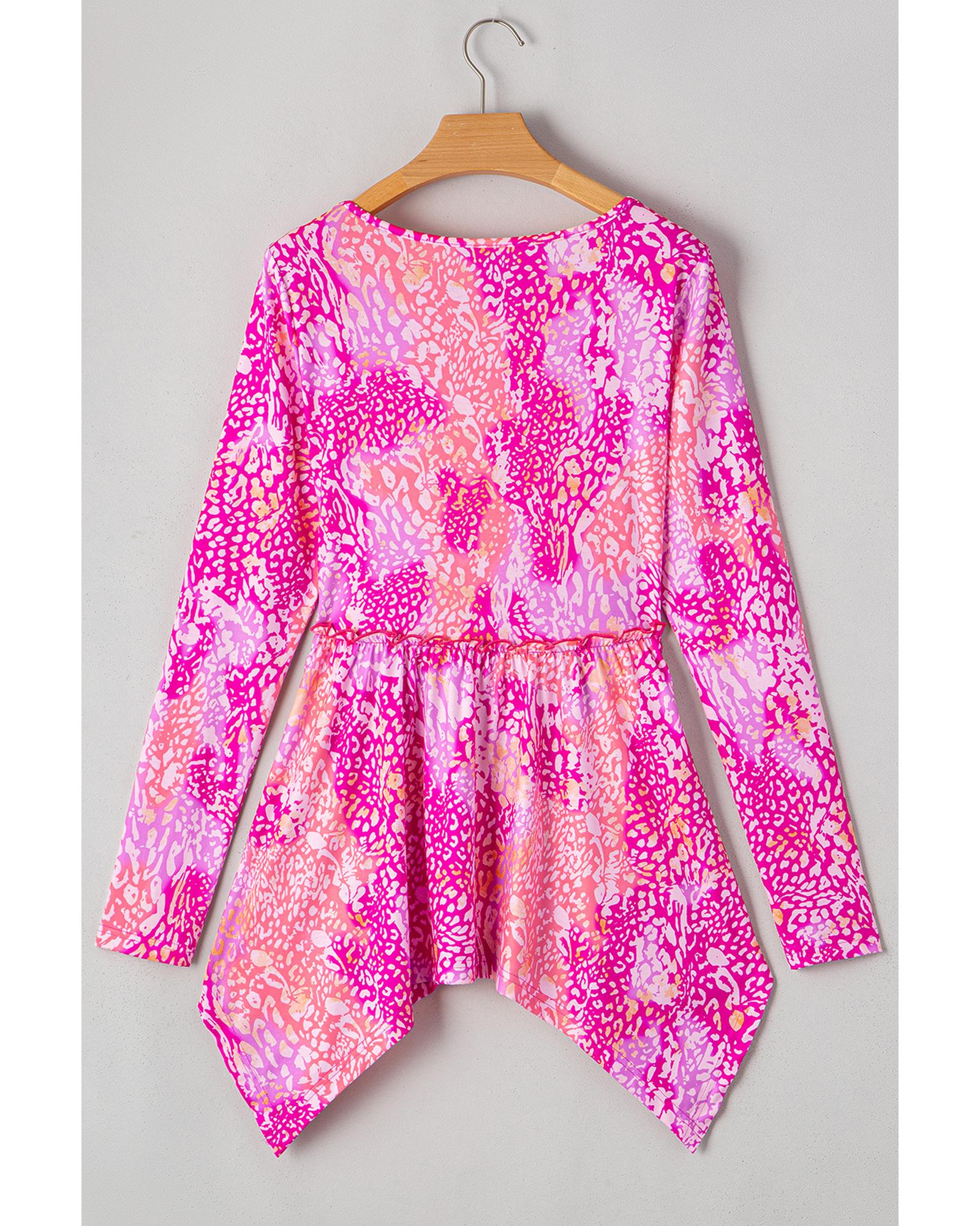 Rose Classic Leopard Print Handkerchief Hem Tunic Top – S