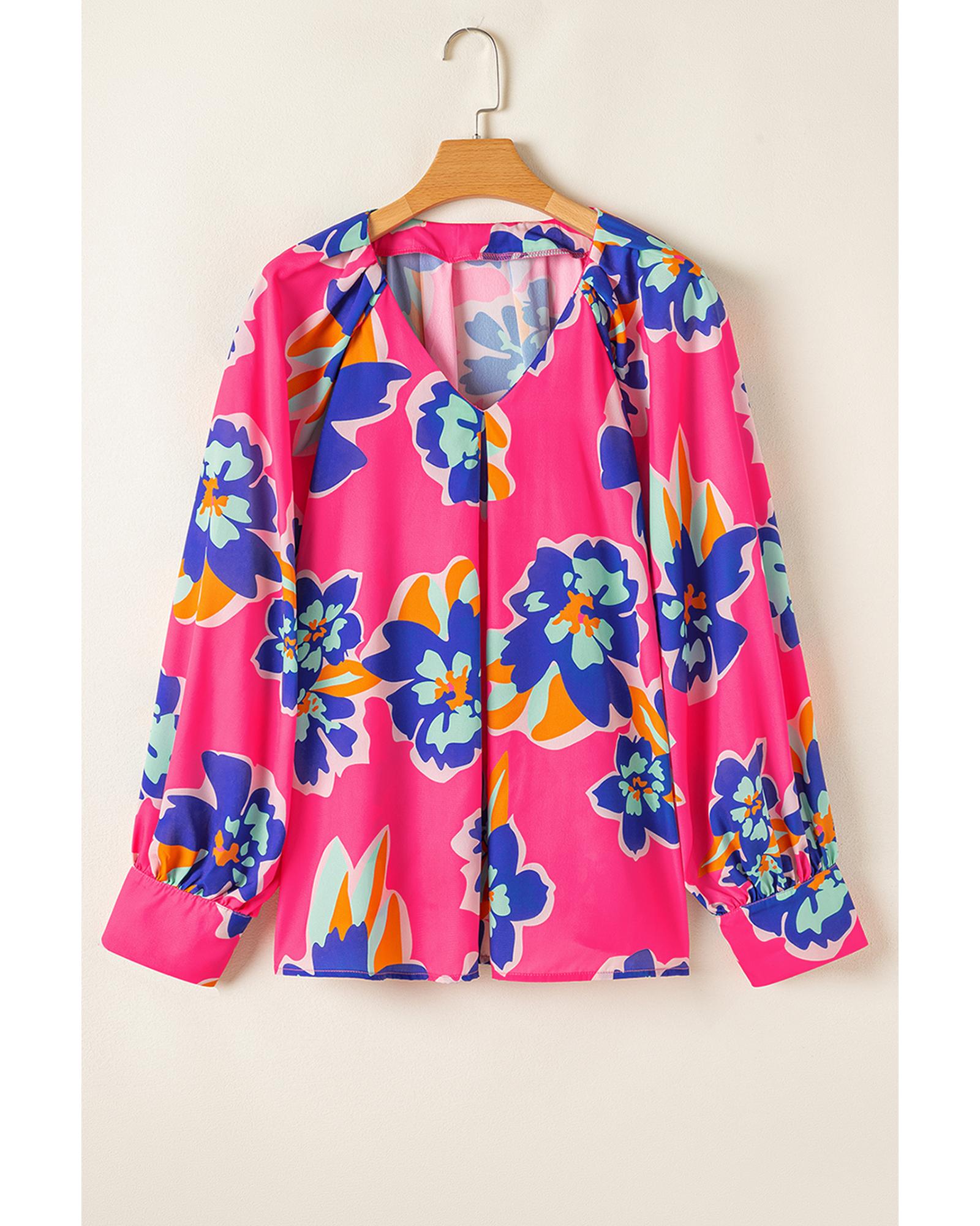 Rose Floral Pattern V Neck Balloon Sleeve Plus Size Blouse – 1X