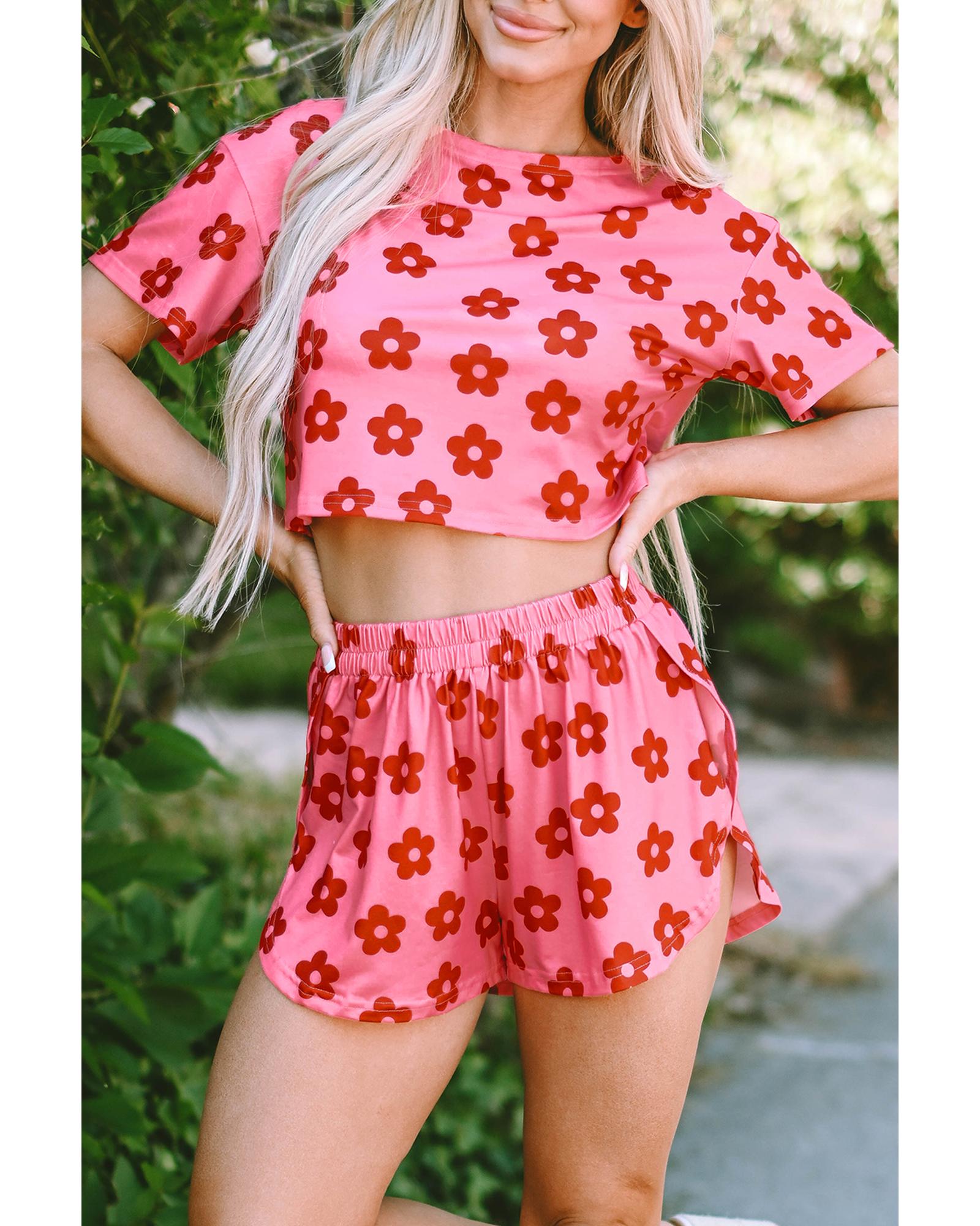 Rose Floral Print Crop Tee and Shorts Lounge Set – M