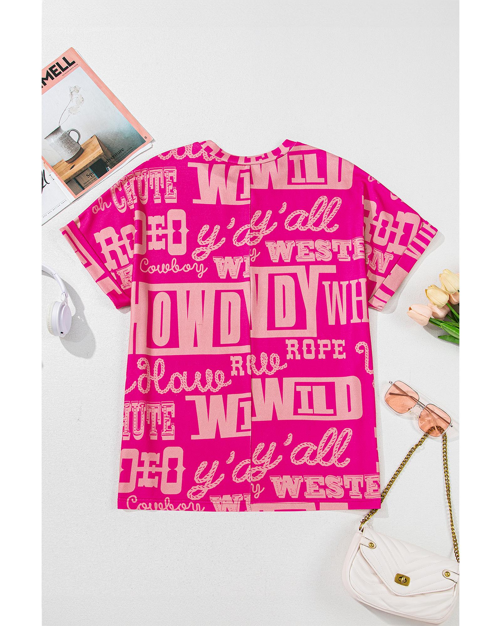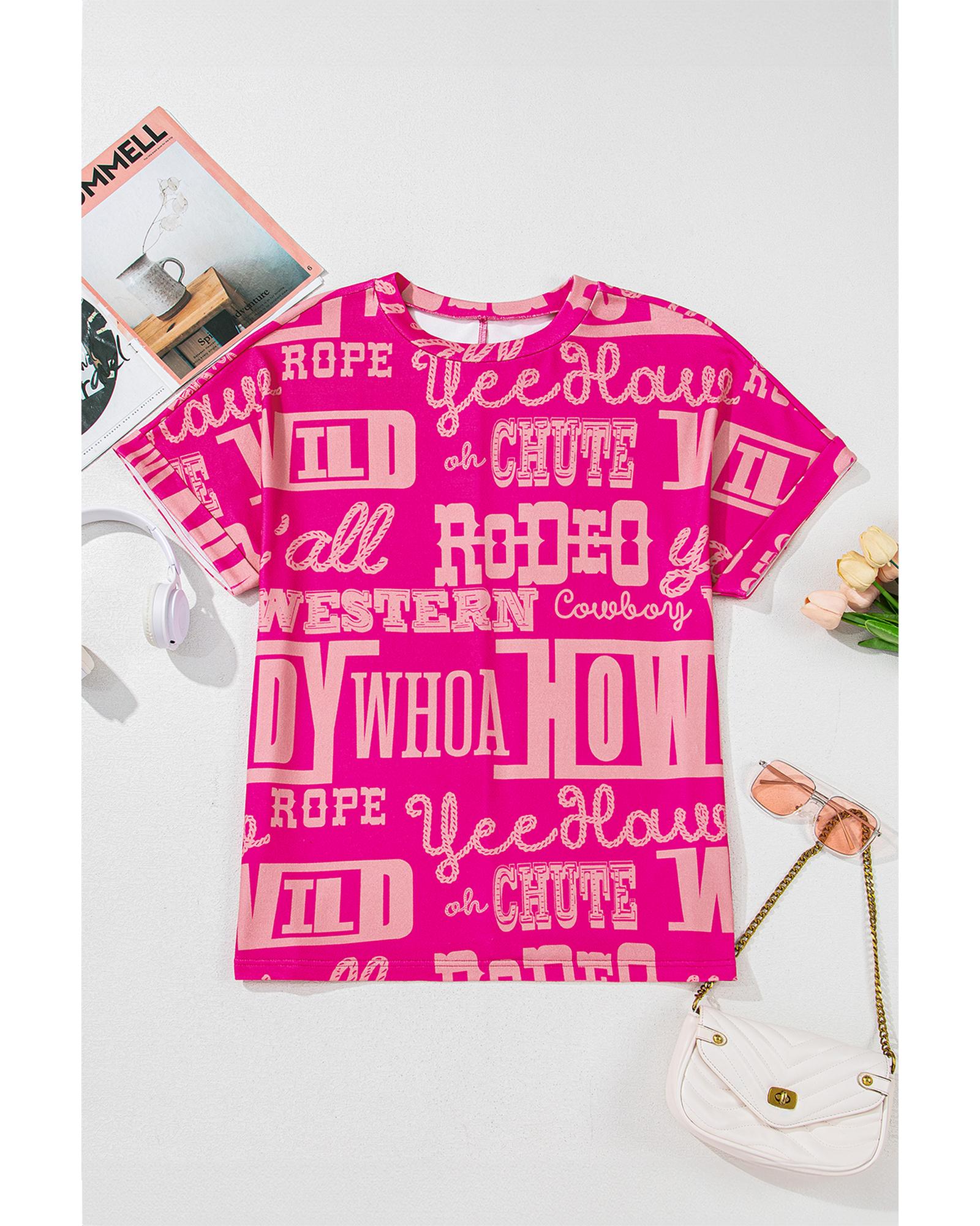 Rose Howdy Cowboy Letter Printed Western Fashion Tee – L