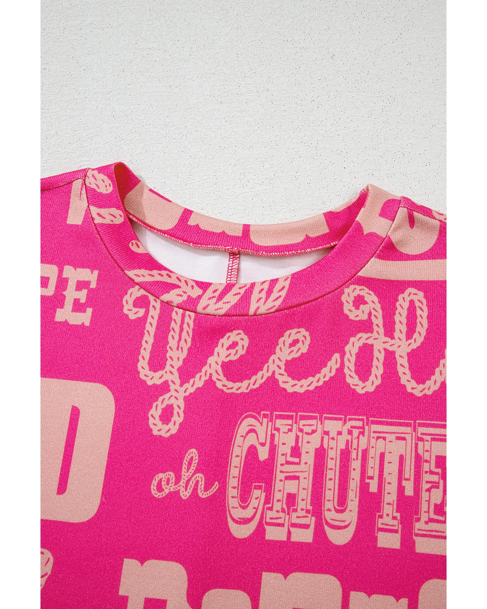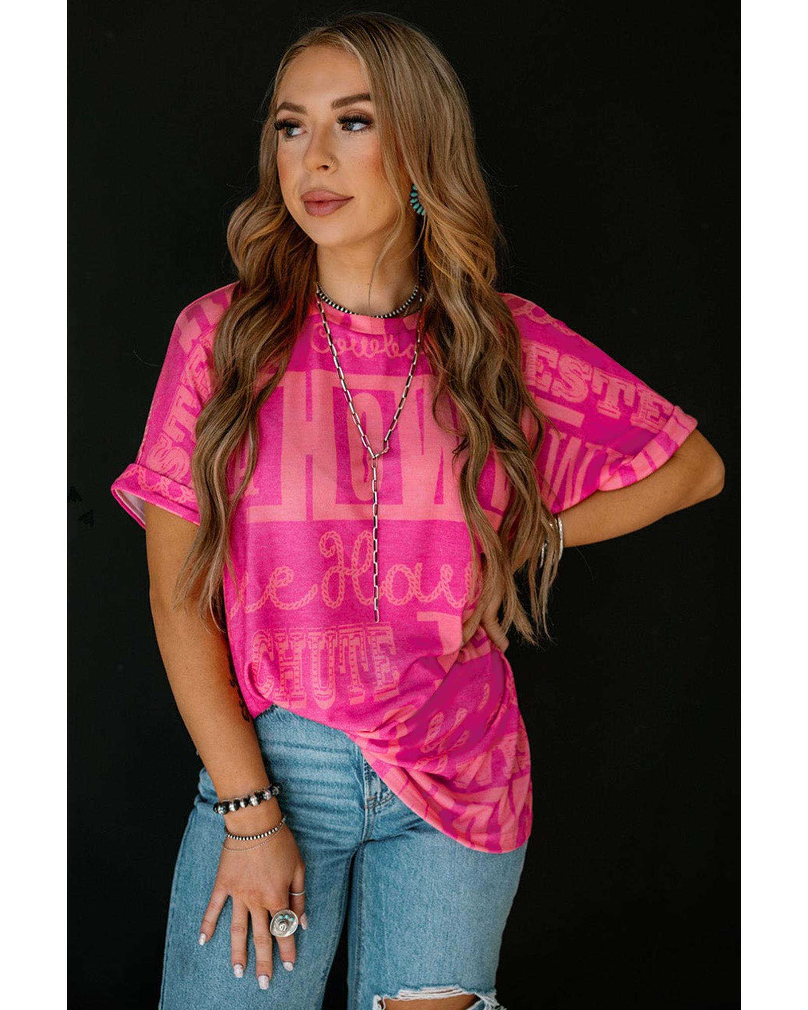 Rose Howdy Cowboy Letter Printed Western Fashion Tee – M