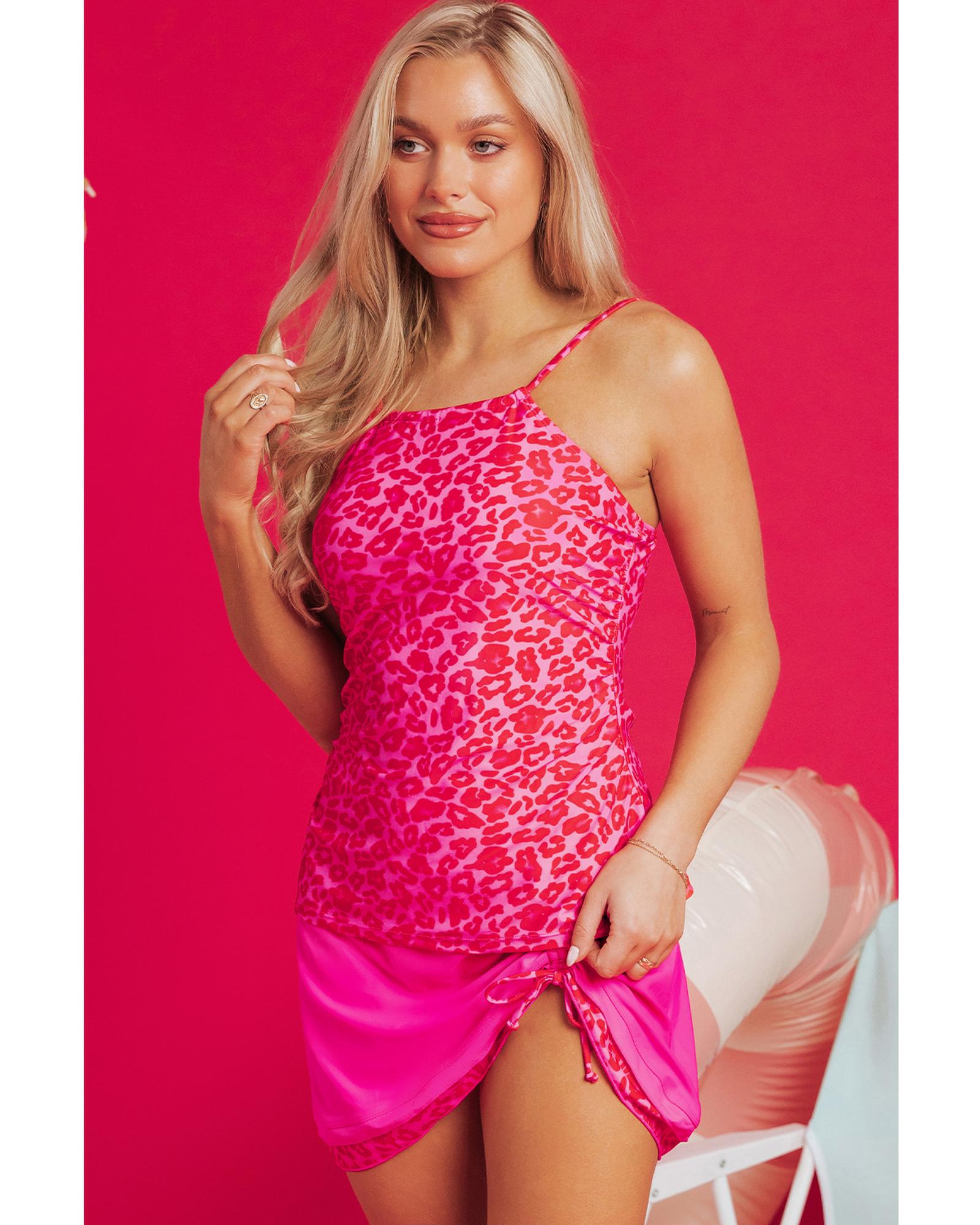 Rose Leopard Drawstring Side Tankini 2pcs Swimsuit – S