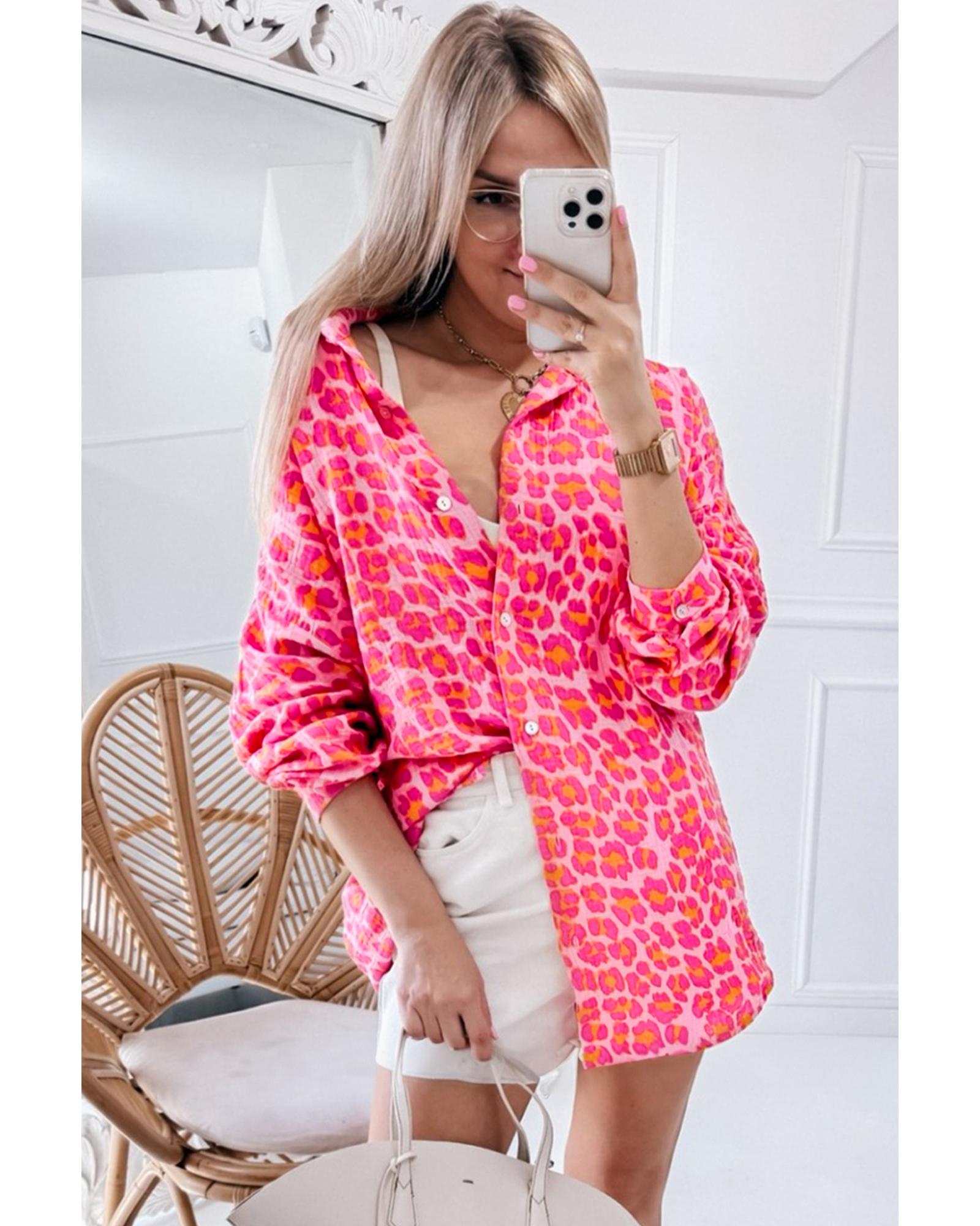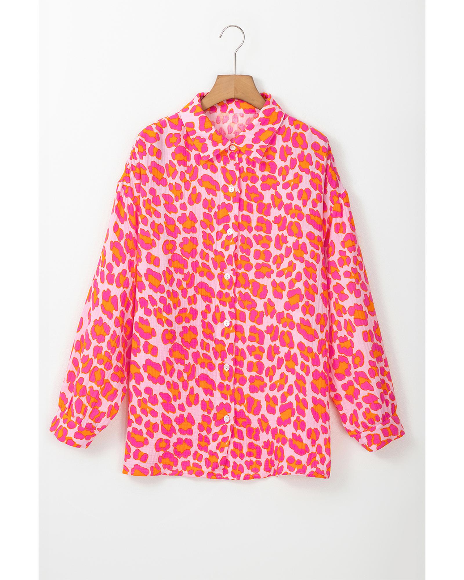 Rose Leopard Printed Button Up Loose Shirt – M