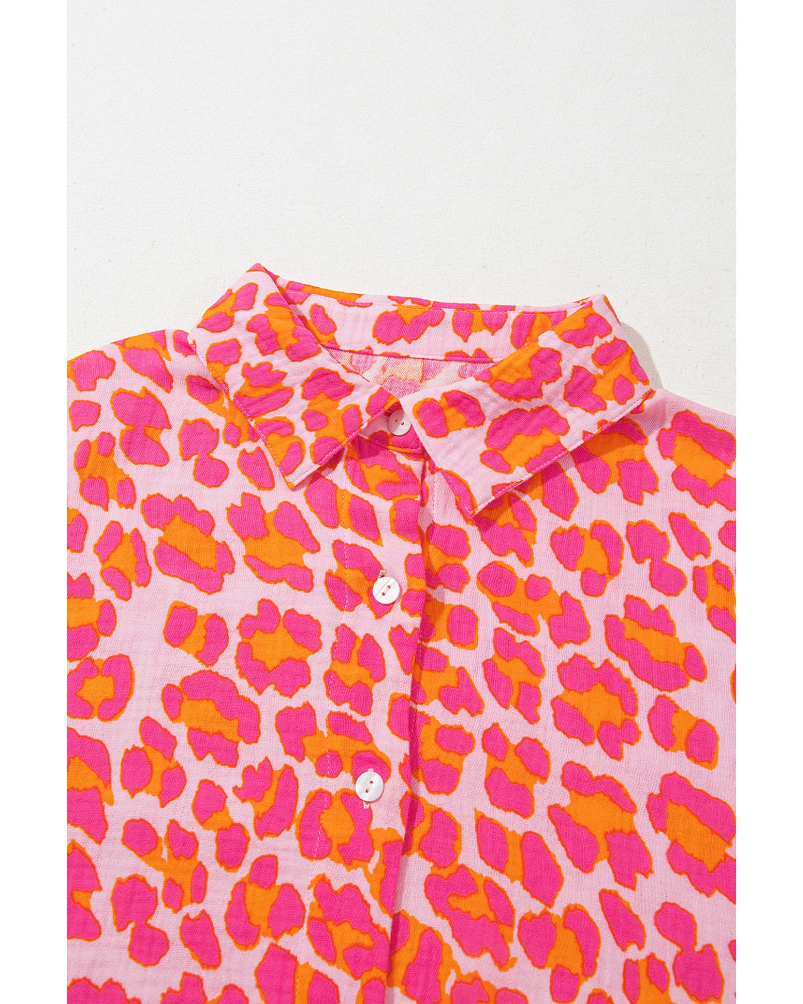 Rose Leopard Printed Button Up Loose Shirt - XL