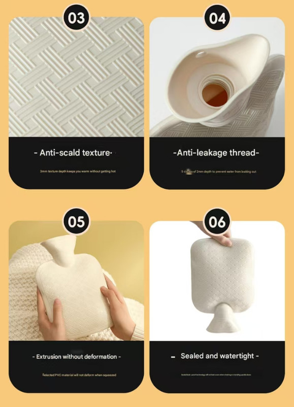 - User-Friendly Design: Features a wide mouth for safe and easy filling, preventing splashes. The bottle’s anti-scald textured surface helps to insulate and distribute heat evenly for long-lasting comfort.