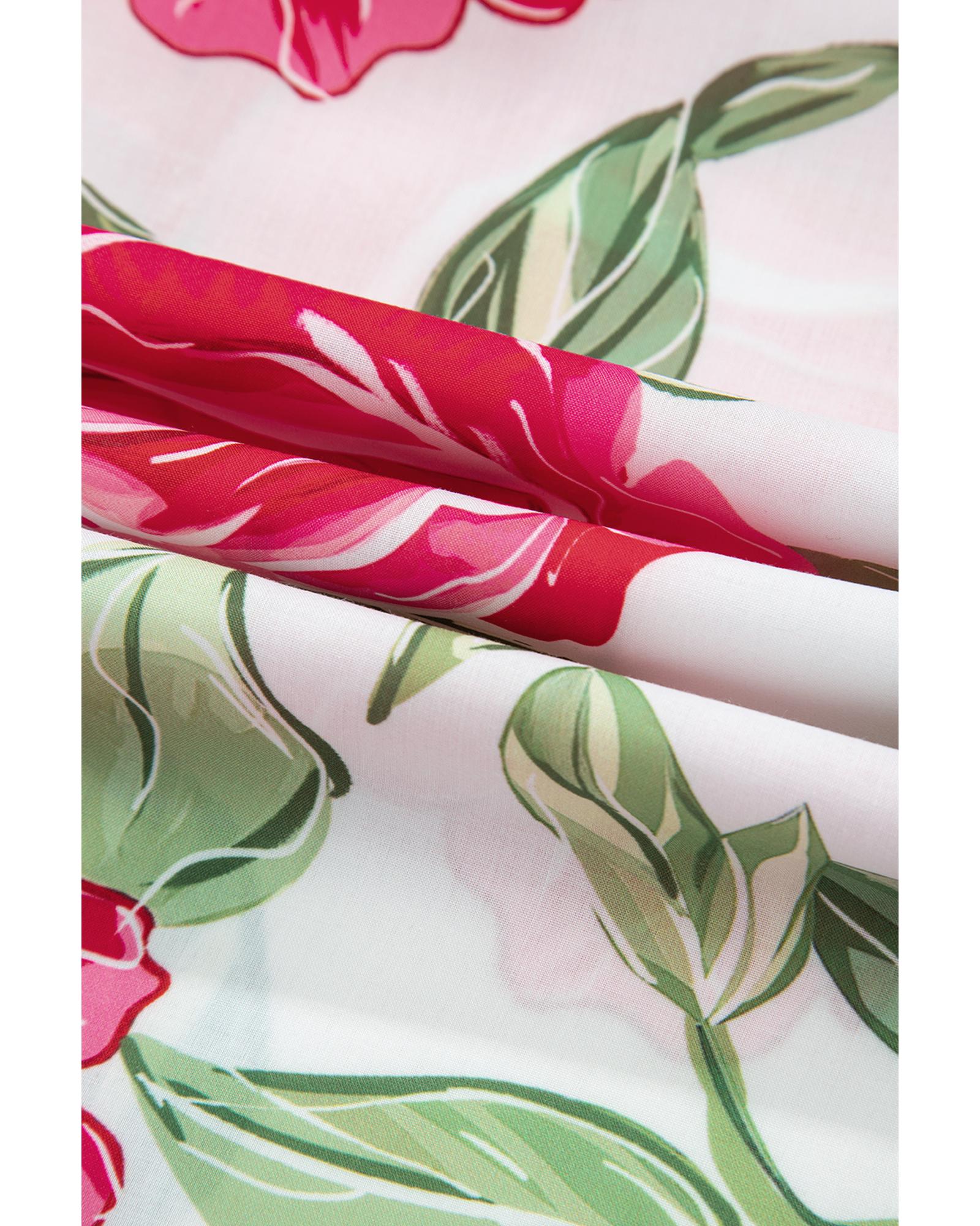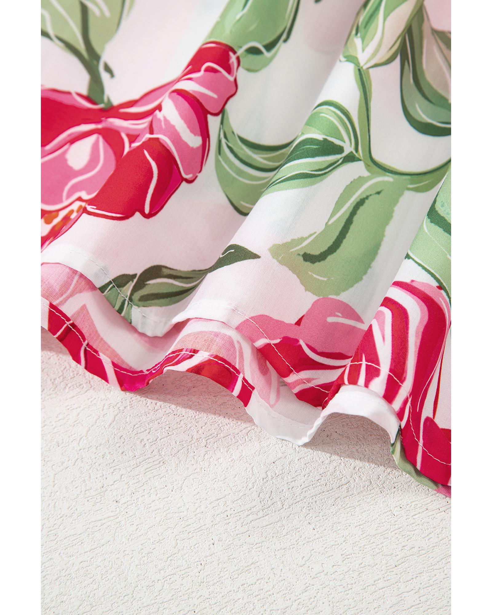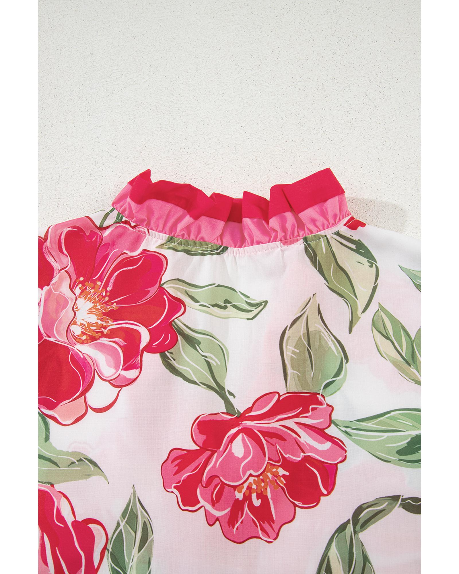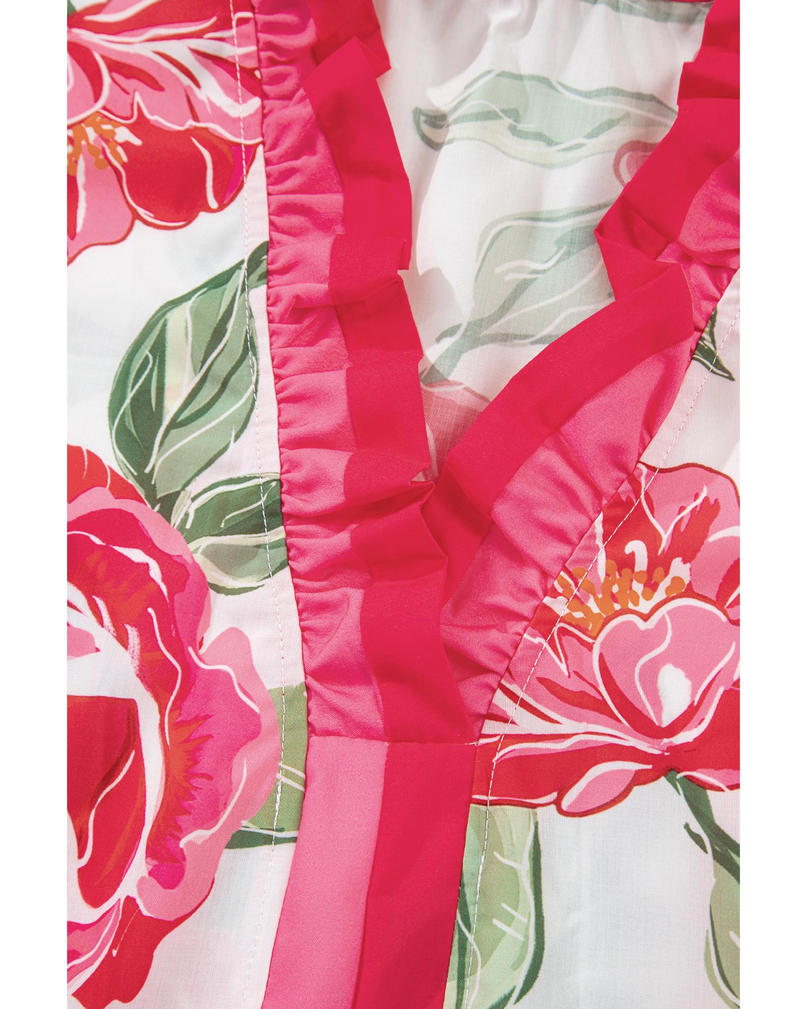 Rose Plus Size Floral Print Frilled Stripes Detail Short Sleeve Blouse – 4X