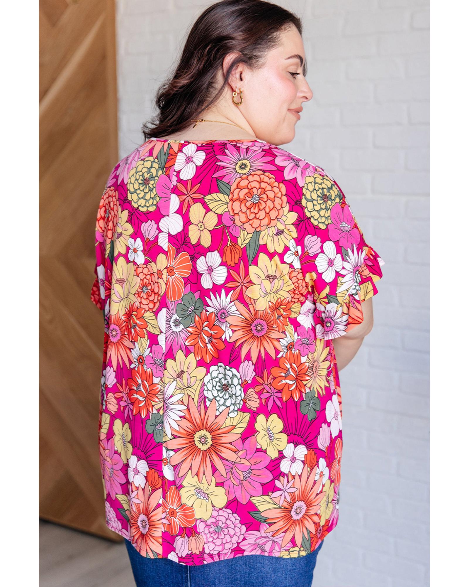 Rose Plus Size Floral Print Ruffle Short Sleeve Blouse - 1X