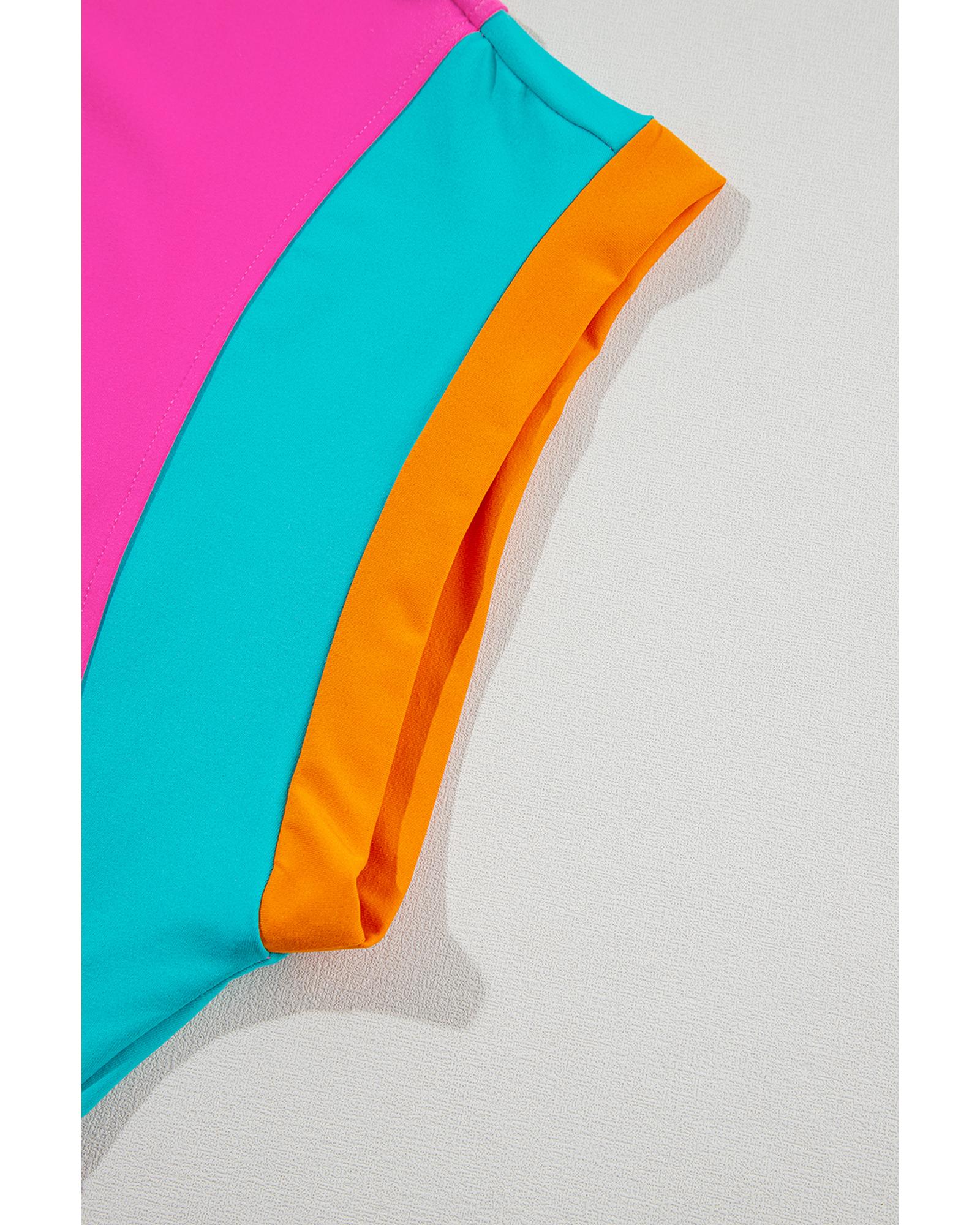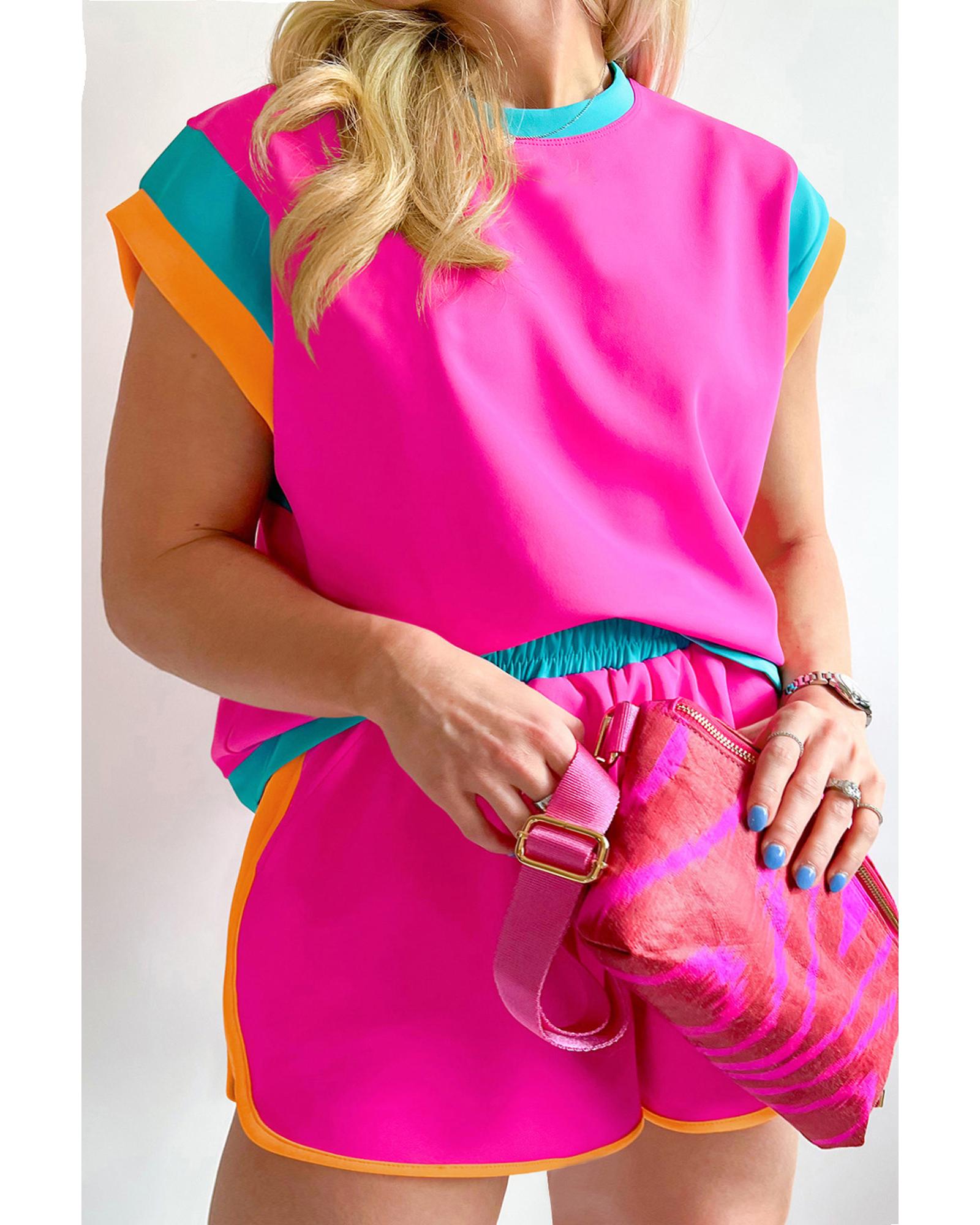 Rose Red Colorblock Patchwork Cap Sleeve Top Plus Size Shorts Set – 1X