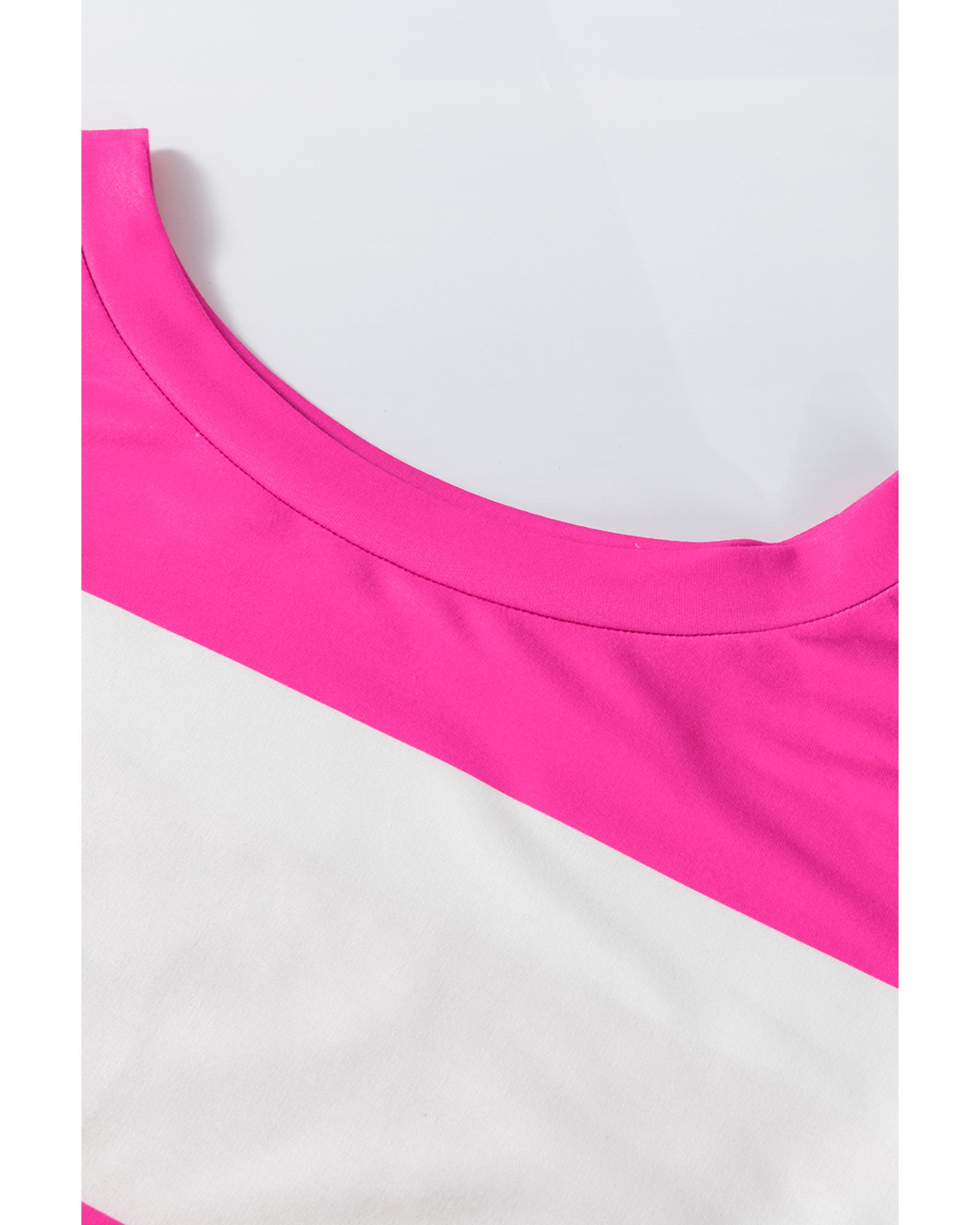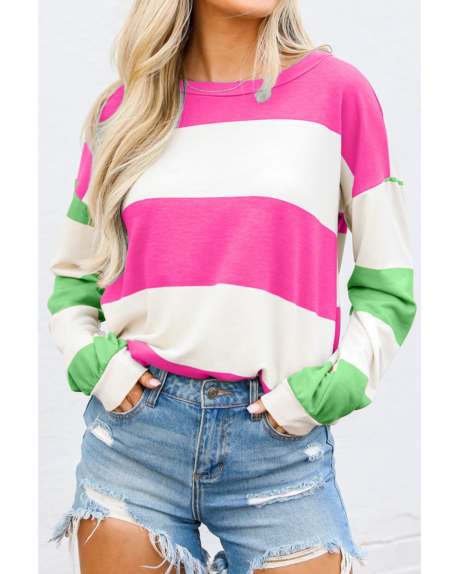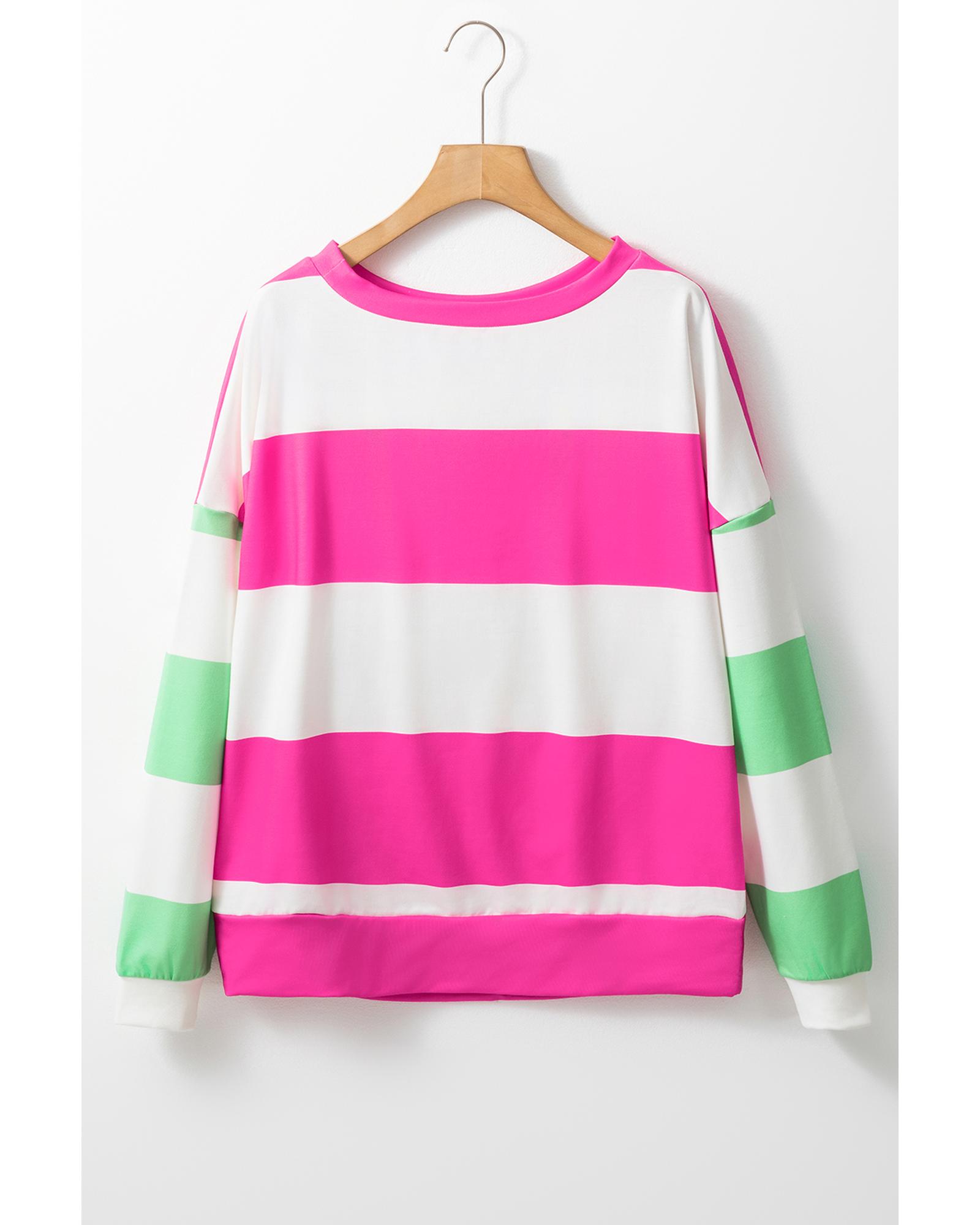 Rose Red Colorblock Striped Drop Shoulder Long Sleeve Top – XL