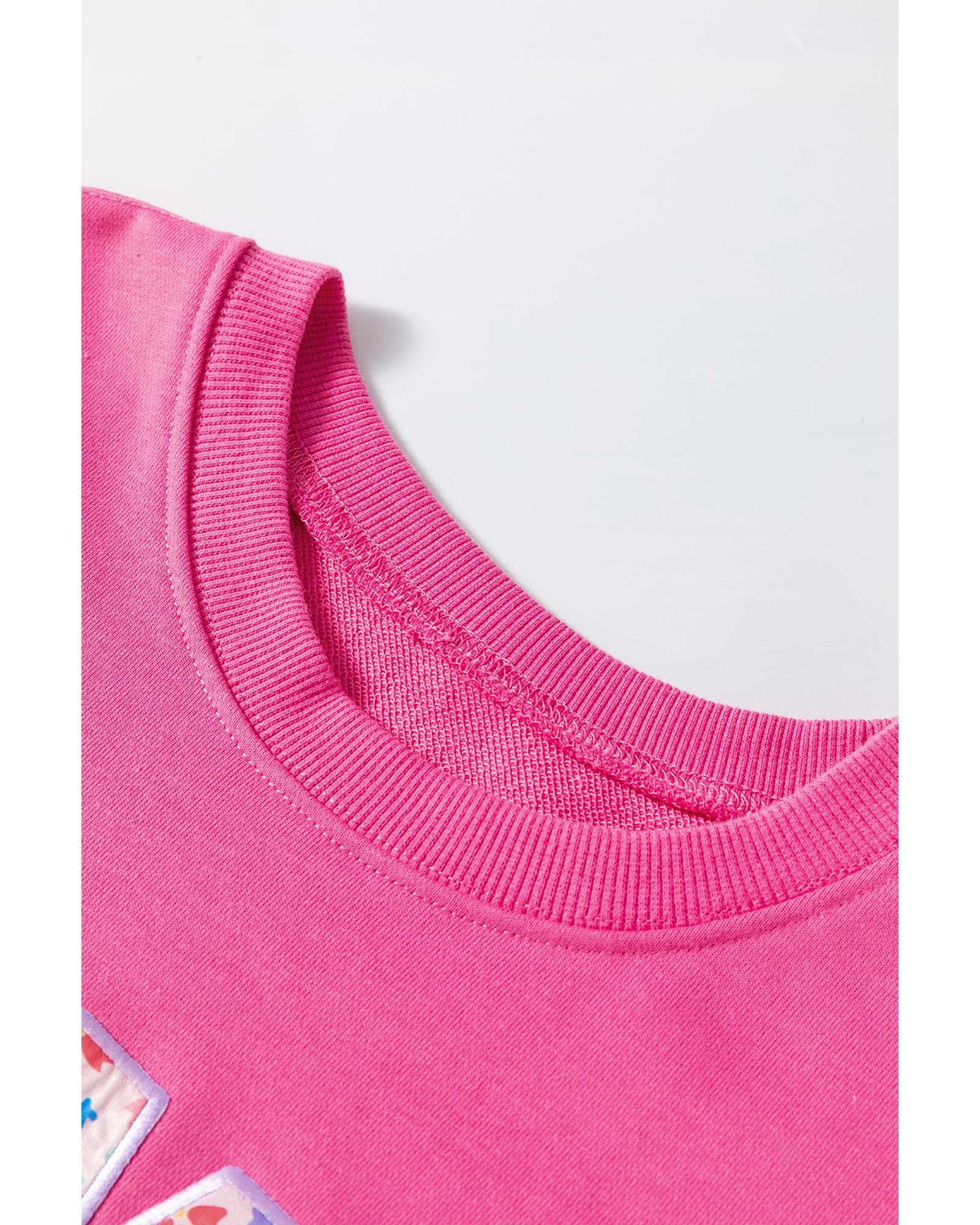 Rose Red Floral MAMA Embroidered Graphic Pullover Sweatshirt – L