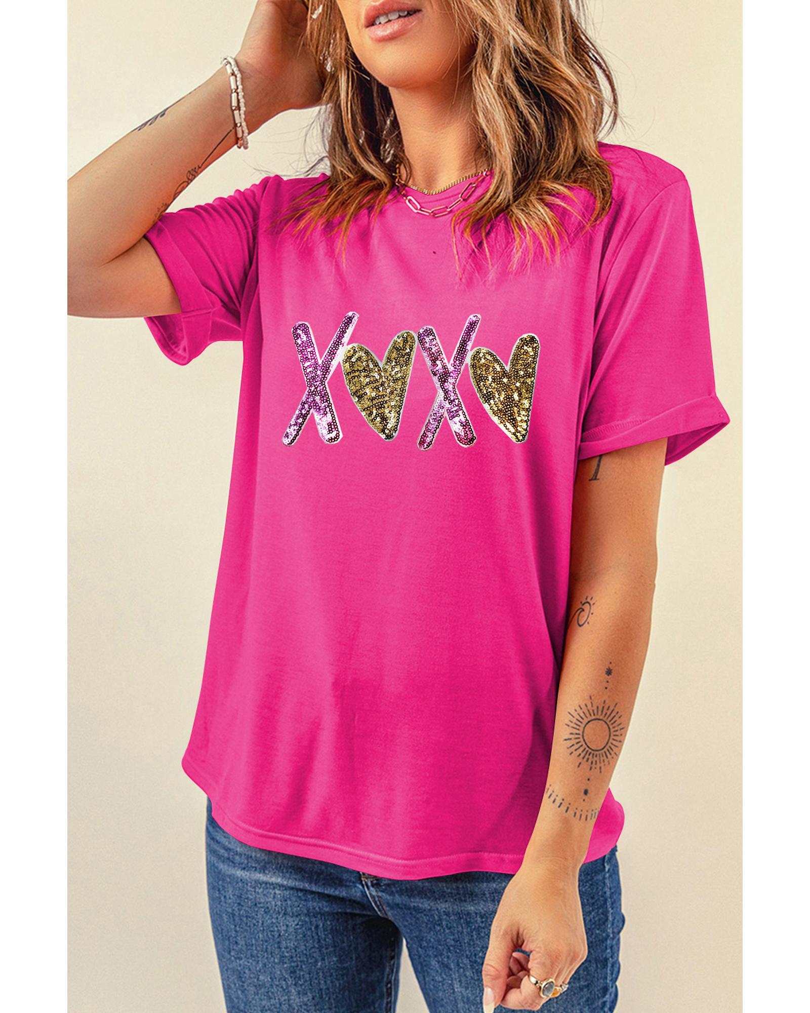 Rose Red Heart XOXO Graphic Crewneck Valentines T Shirt – L