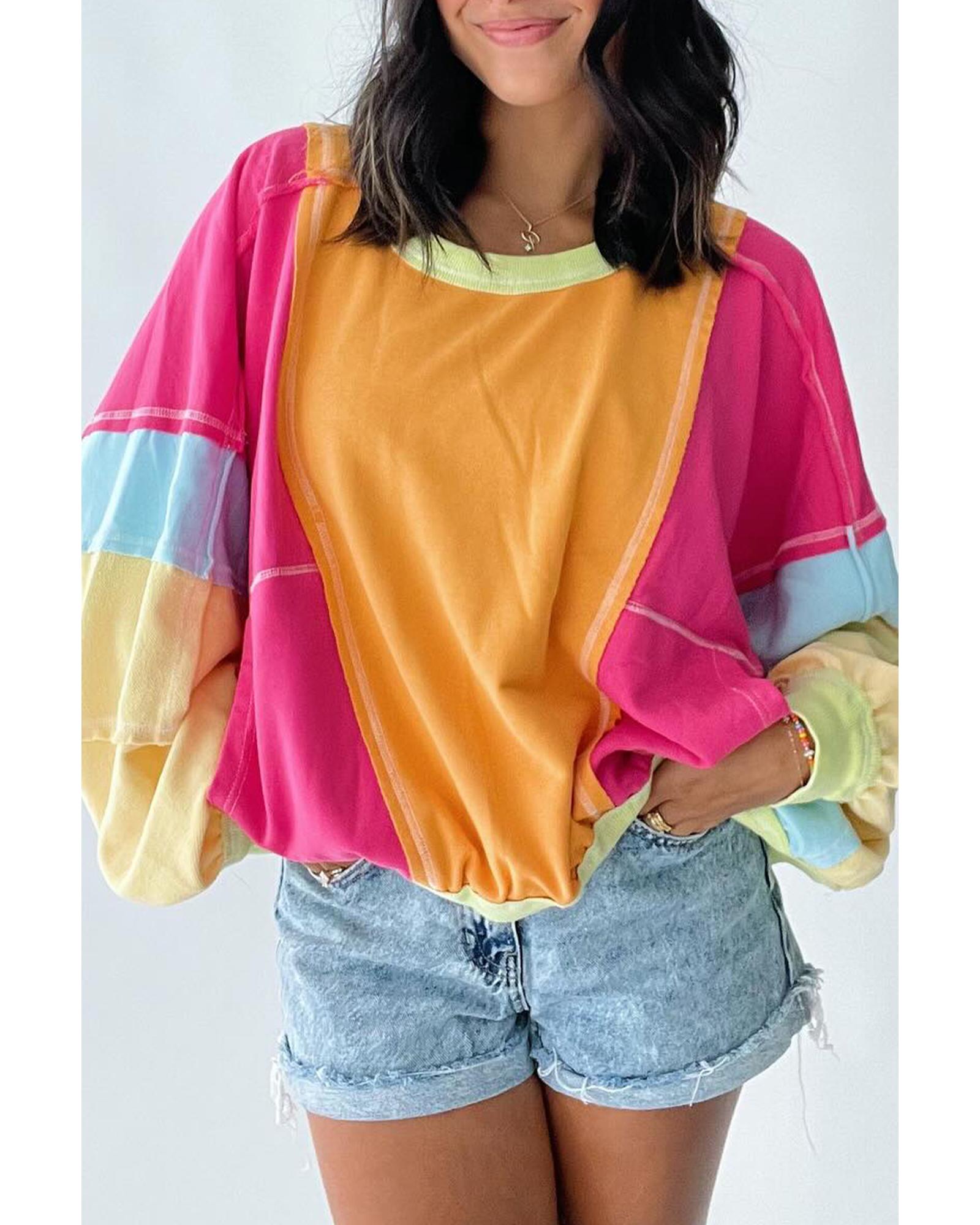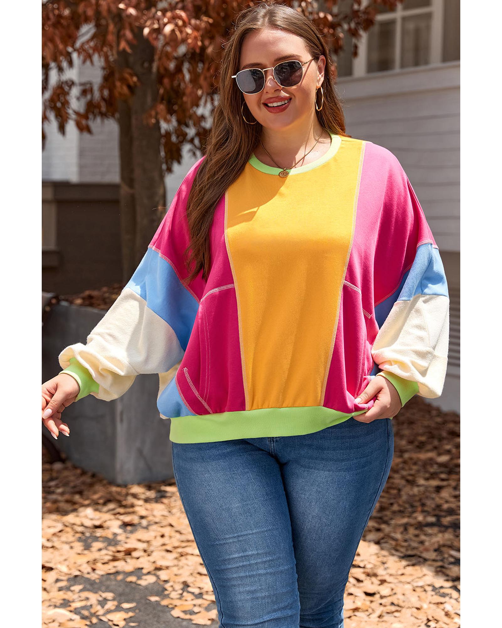 Rose Red Plus Size Colorblock Patchwork Exposed Seam Sweatshirt – 4X
