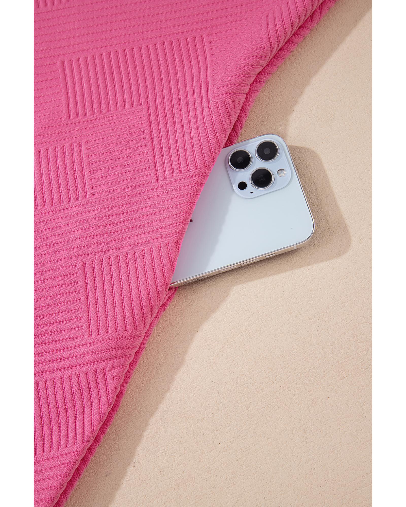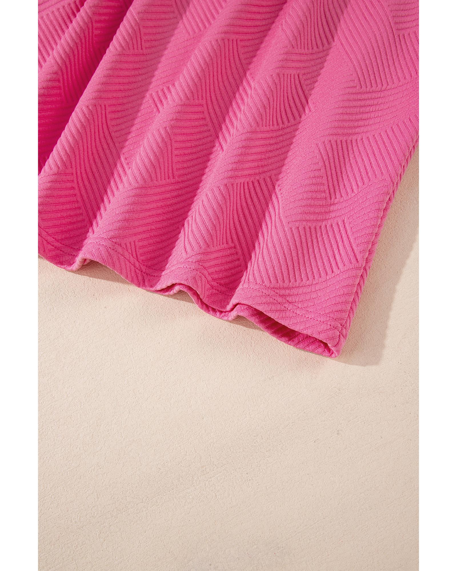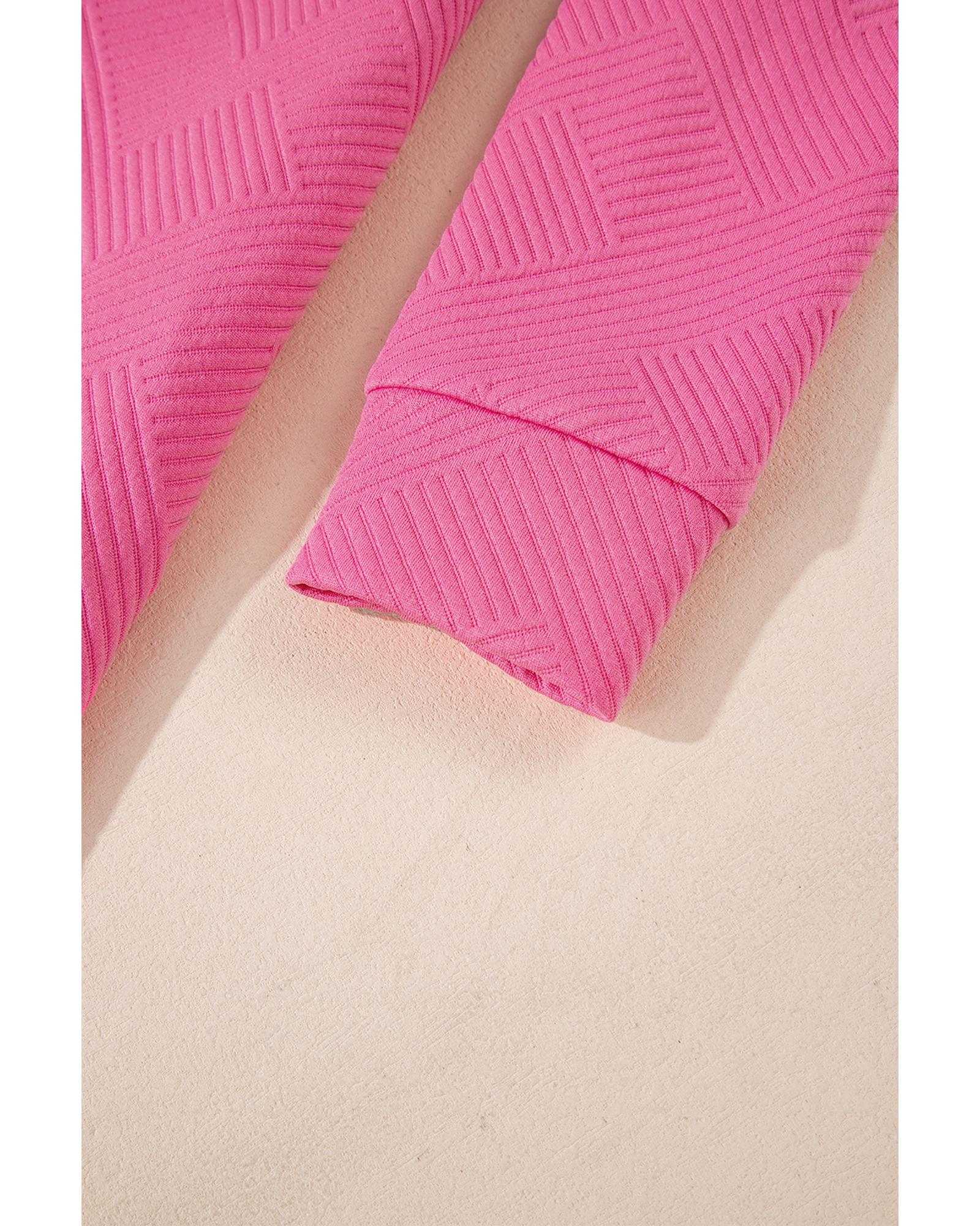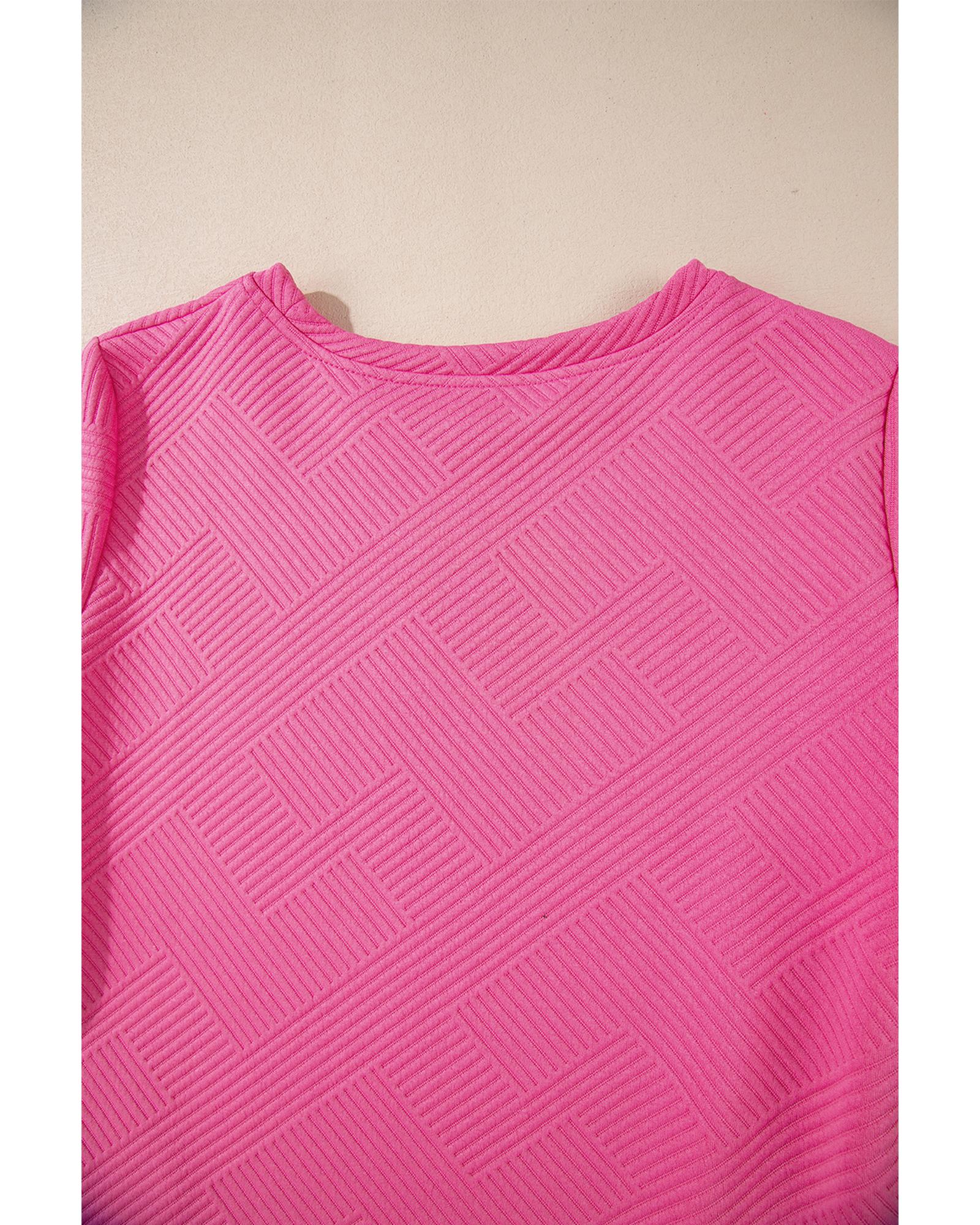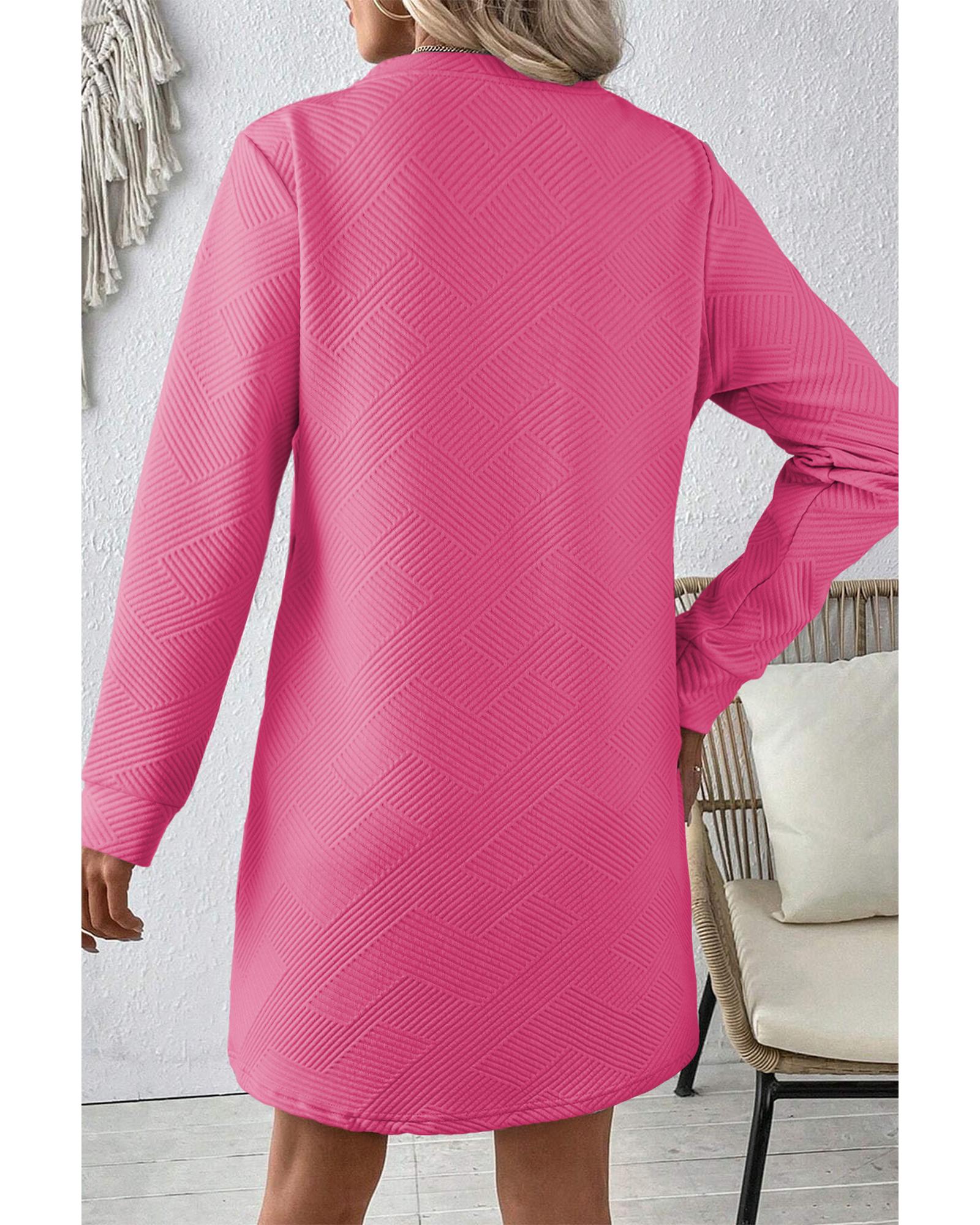 Rose Red Solid Color Textured Long Sleeve Shift Dress – L