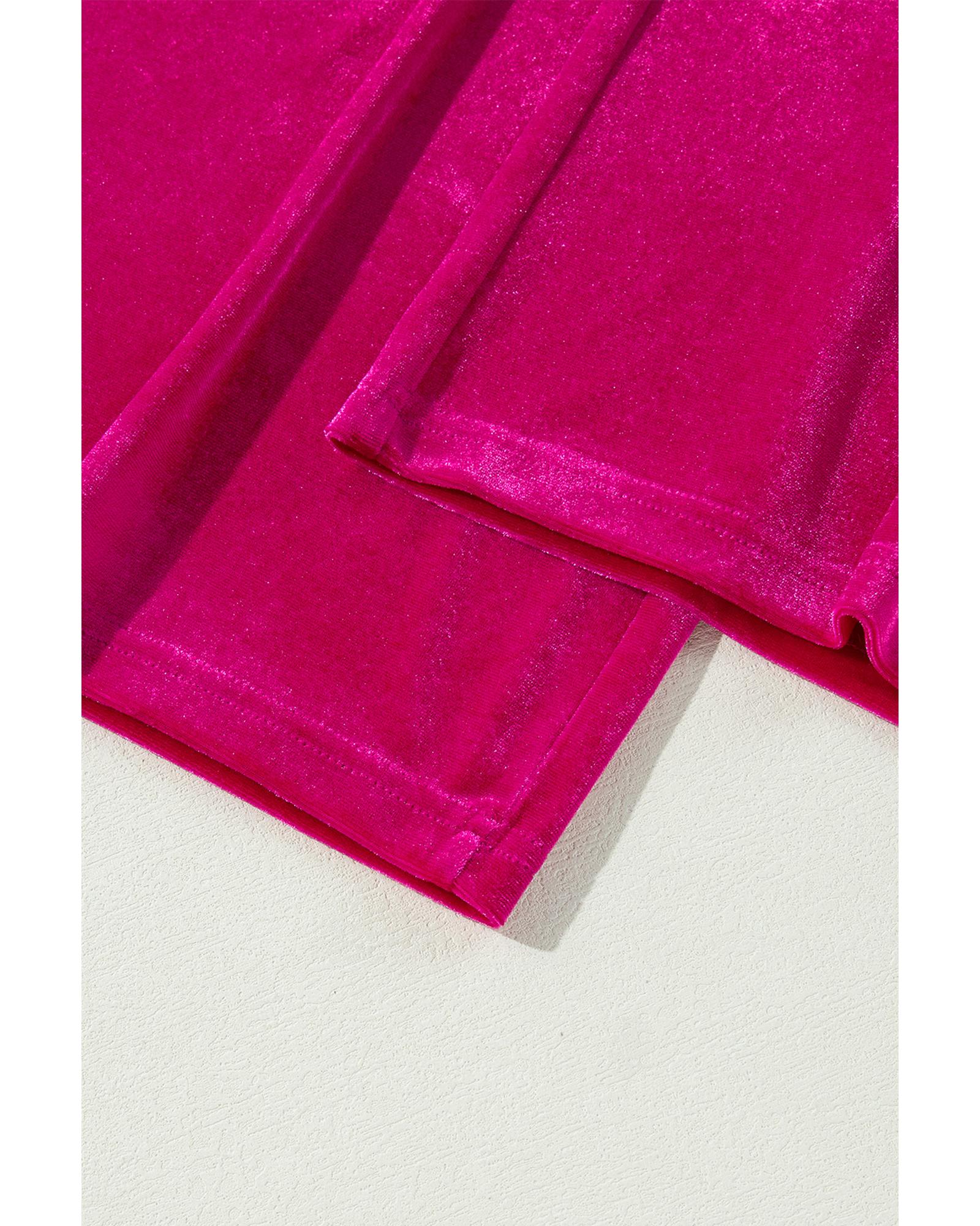 Rose Red Solid Velvet Ruffled Two Piece Pants Set – 2XL