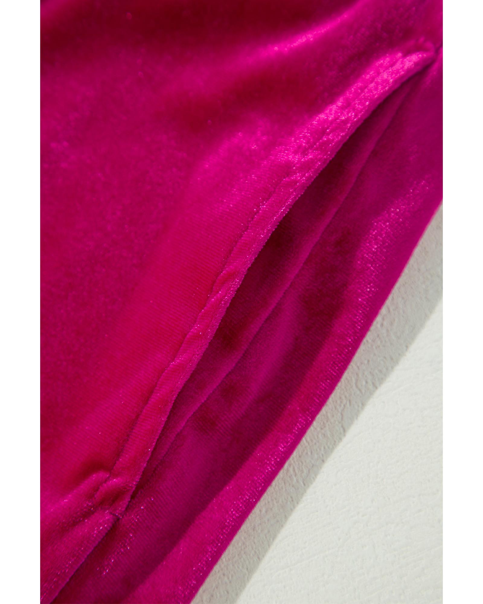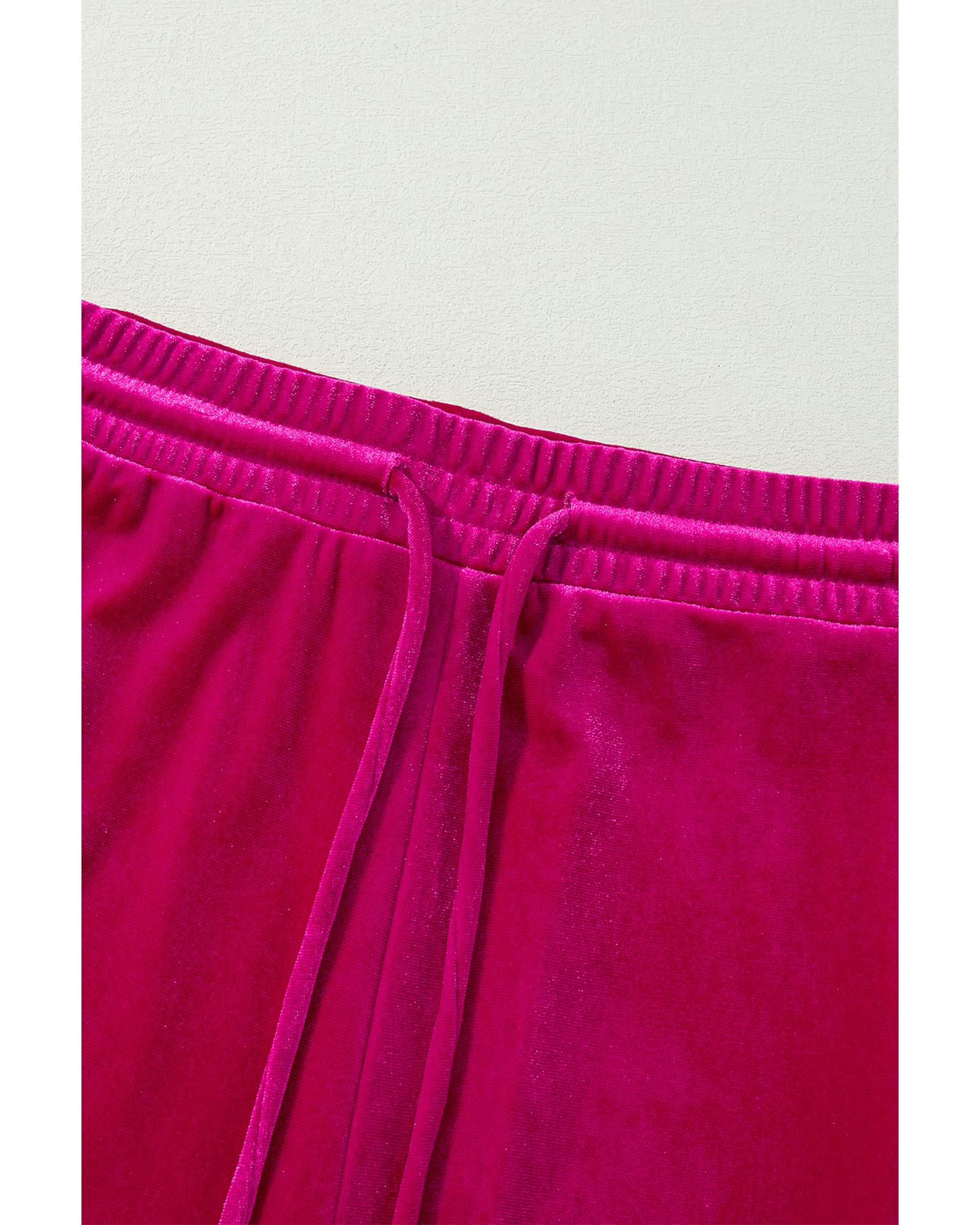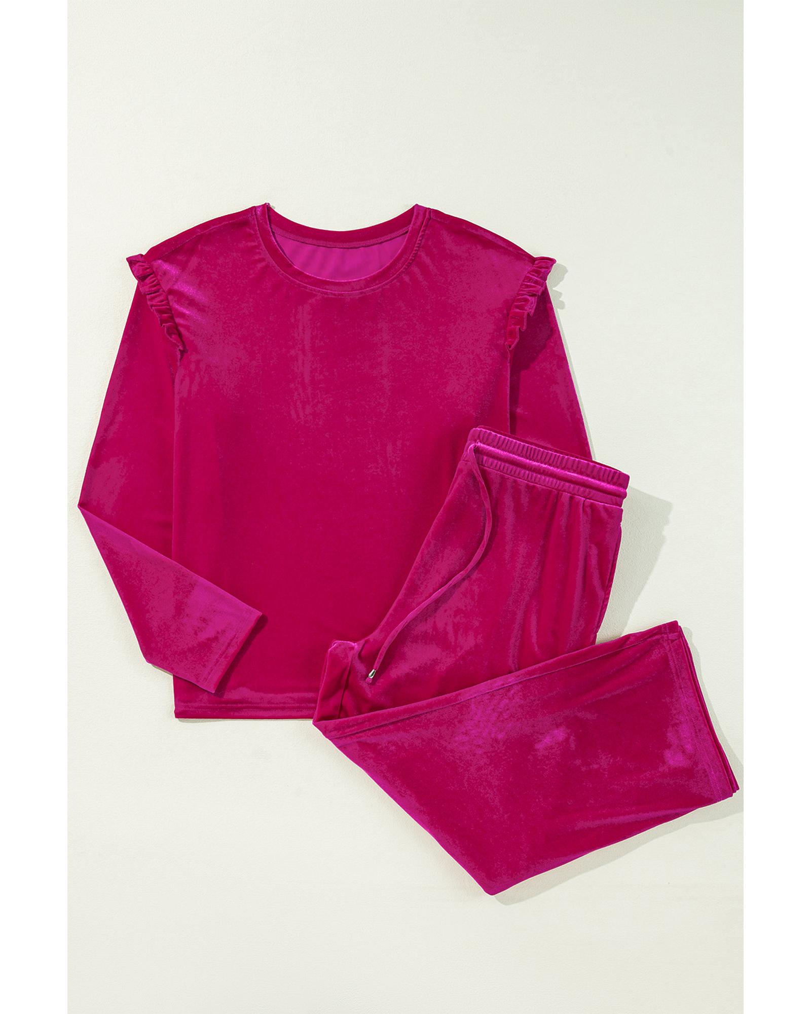 Rose Red Solid Velvet Ruffled Two Piece Pants Set – XL