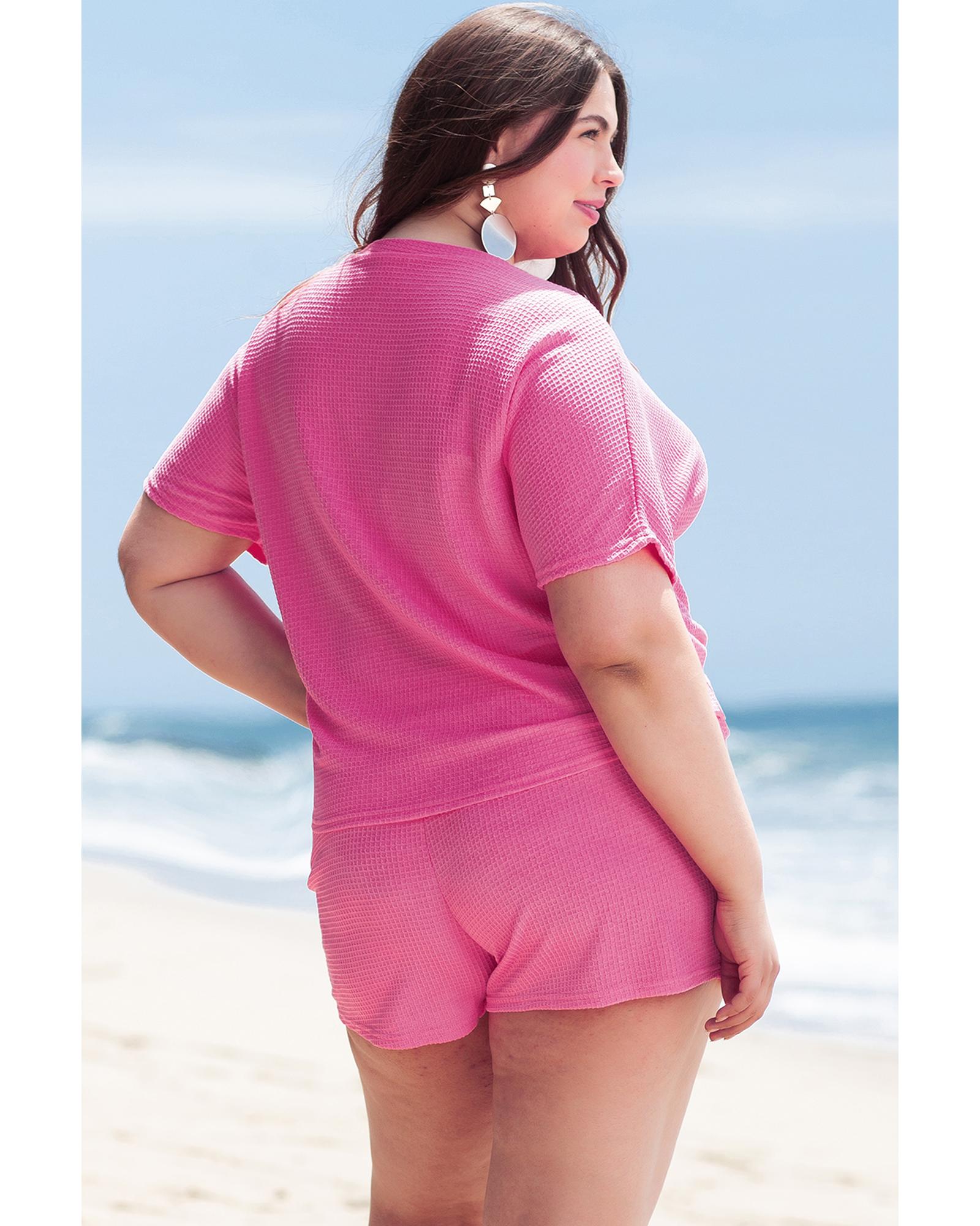 Rose Red Solid Waffle Knit Plus Size Two Piece Set – 1X