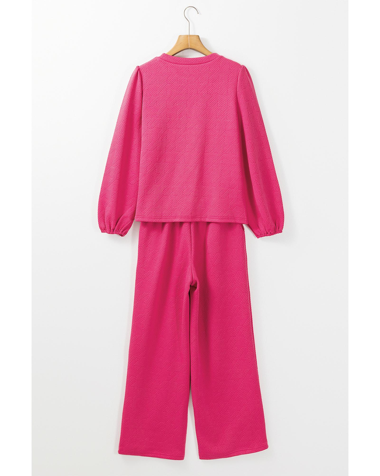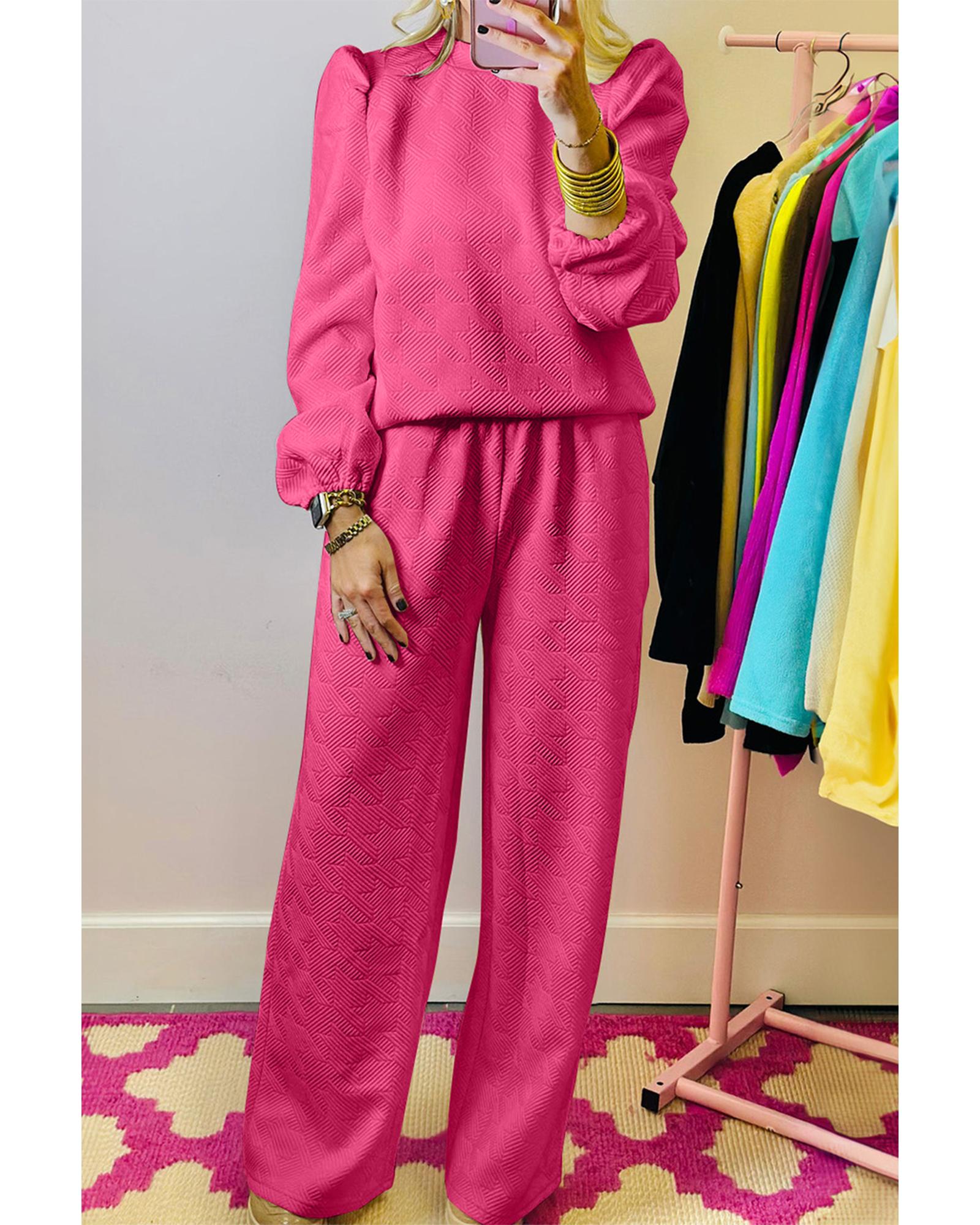 Rose Red Textured Puff Sleeve Top and Pants Set – L