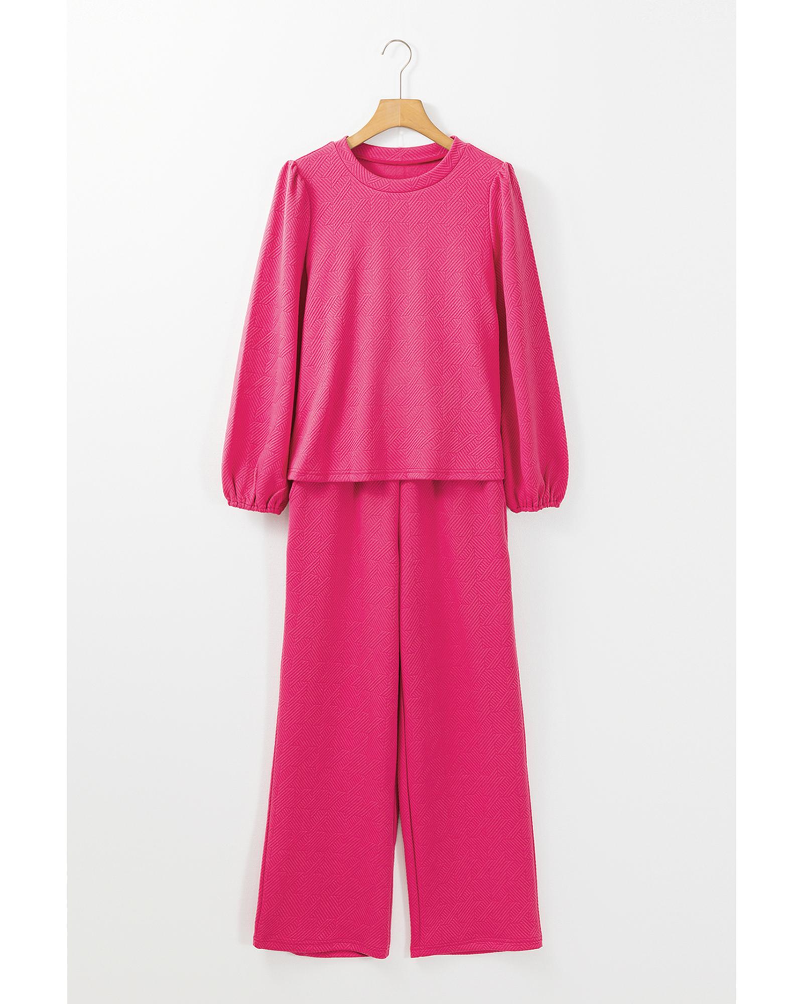 Rose Red Textured Puff Sleeve Top and Pants Set – M