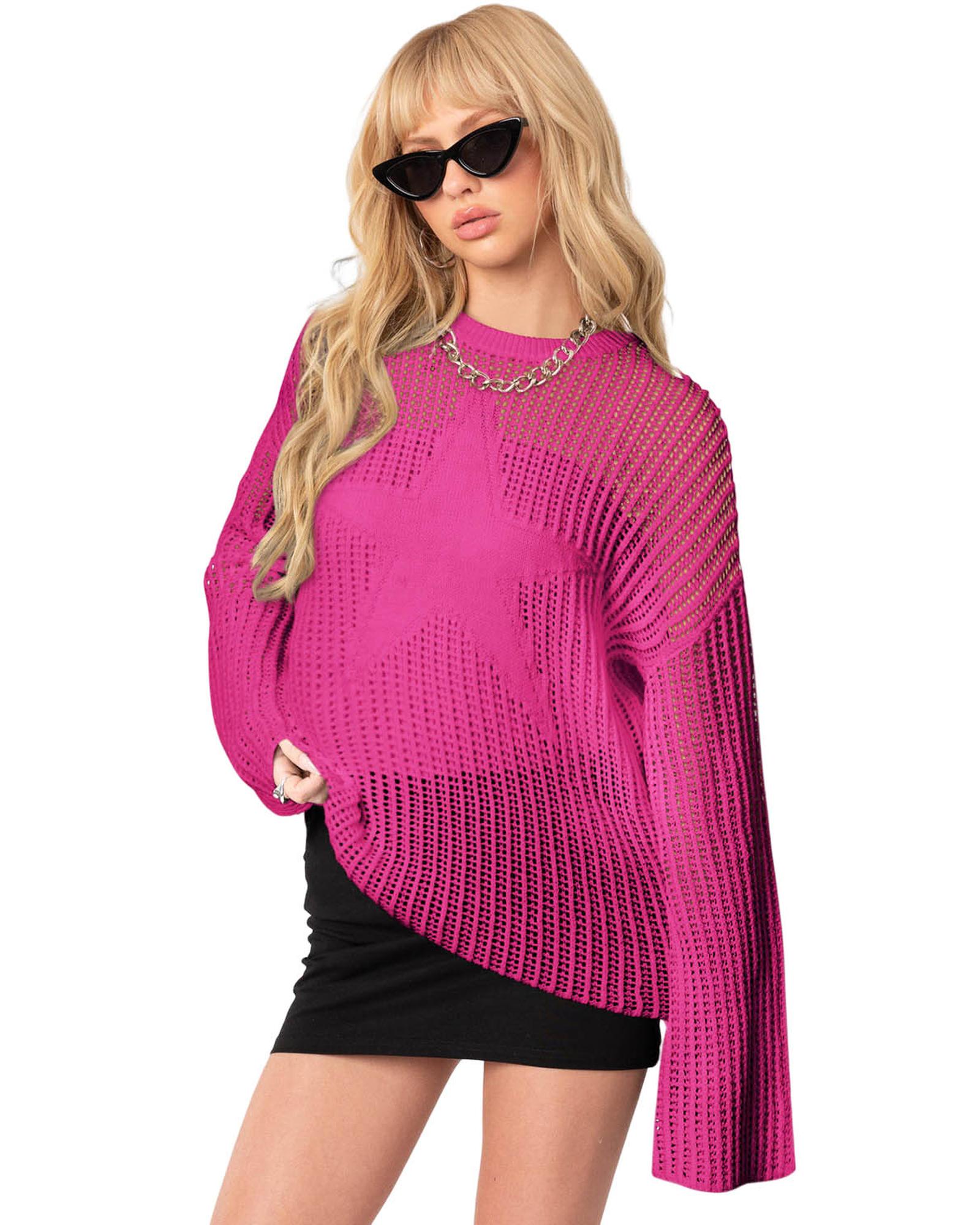 Gold Flame Patch Pocket Ribbed Knit Short Sleeve Sweater - S